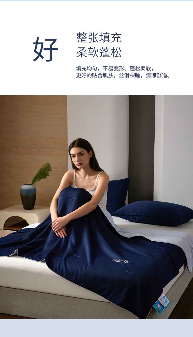 鸣升家纺 2026新款凉感丝提花夏被夏凉被空调被 冰感-深蓝