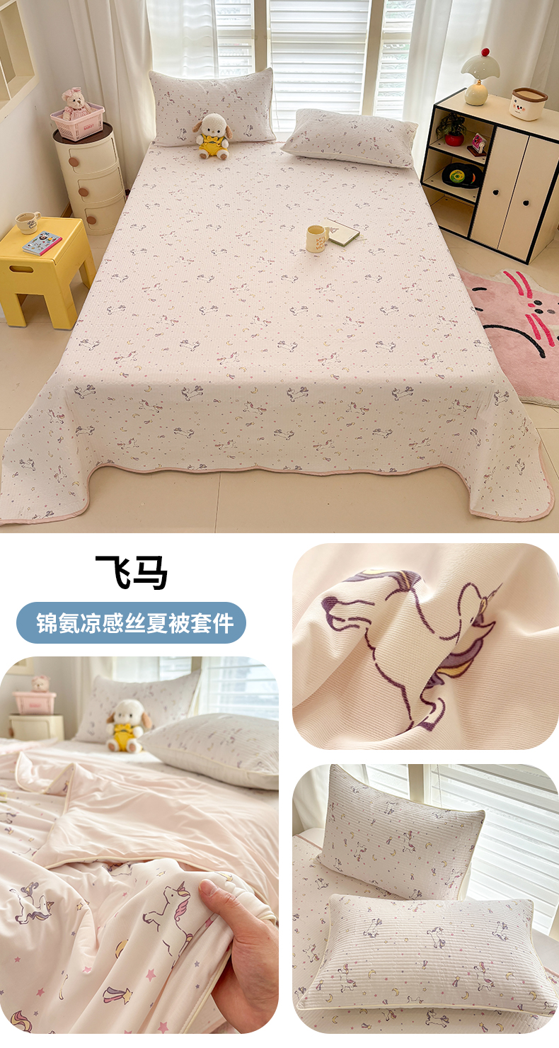• 91家纺网 家纺一手货源 找家纺 (总)优悦生活馆 2026新款麻绳款锦氨凉感丝夏被,蝴蝶结小兔,彩条小象,飞马,水果小人,小猫花朵,小王子
