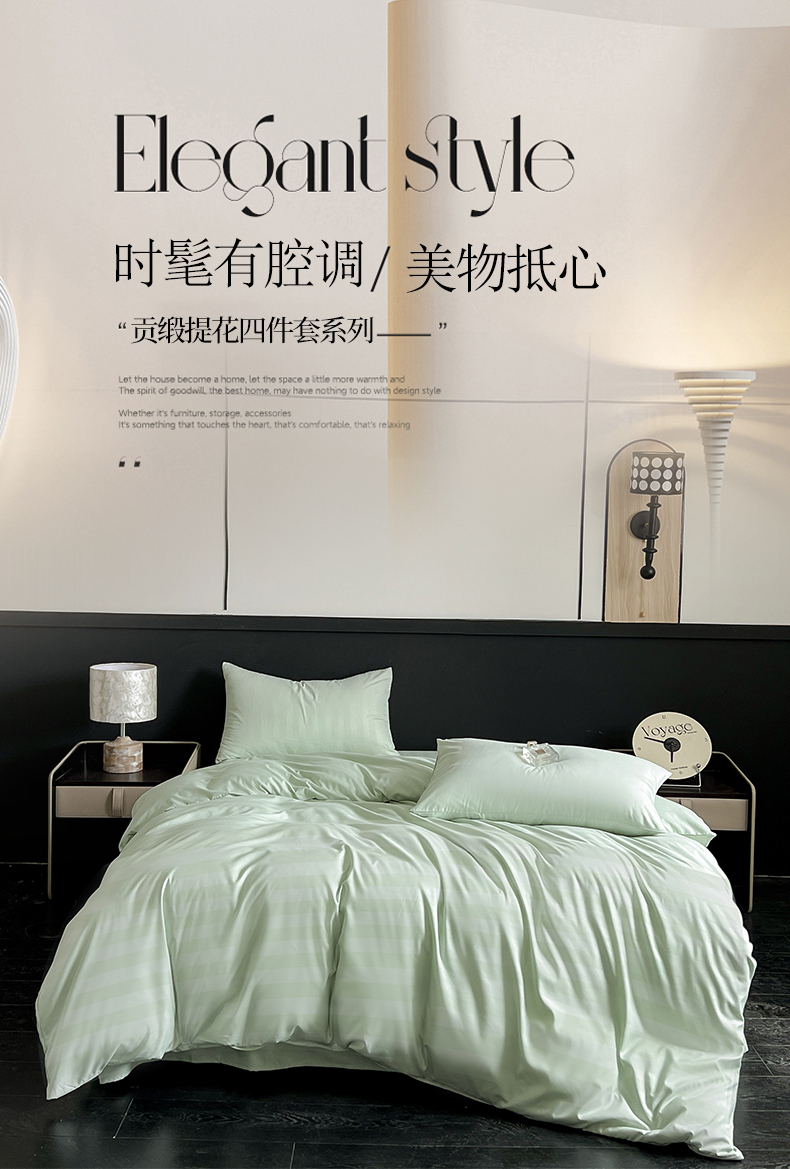 当前位置: 91家纺网 > 商品网购 > 床品套件 > 四件套 > 其它四件套 > 蓝淋家纺 2026春夏新款贡缎提花四件套 茶青缎