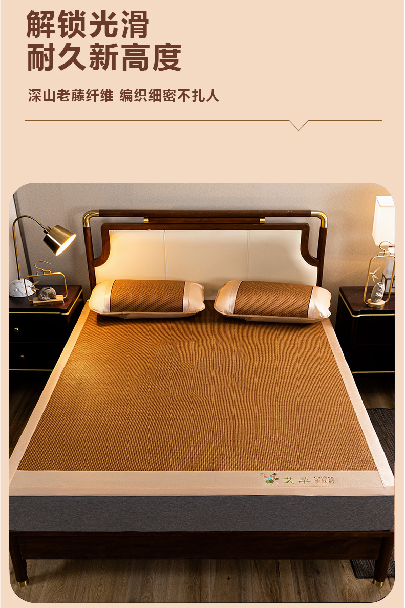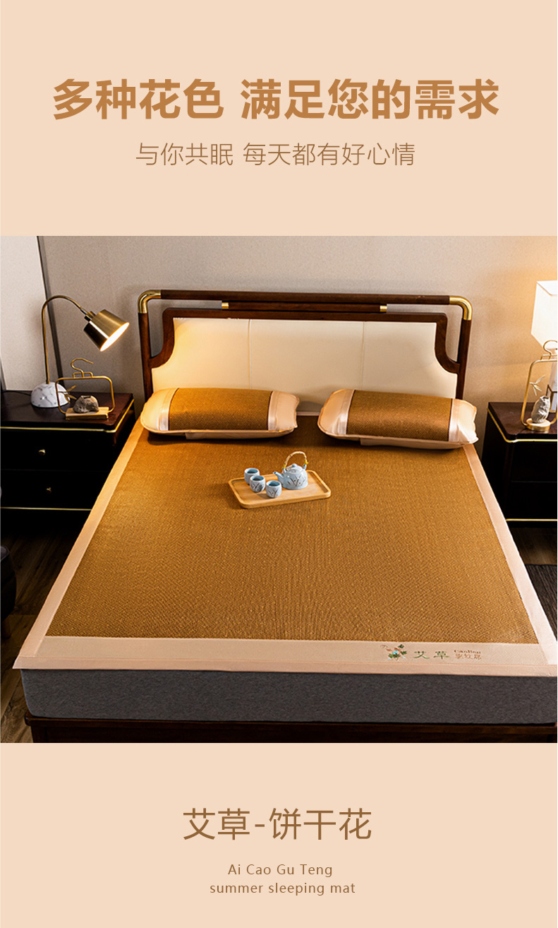 当前位置: 91家纺网 > 商品网购 > 床上用品 > 凉席 > 藤席 > 瑞禾家纺 2026新款艾草刺绣双面古藤席艾草刺绣藤席双面席反面冰丝席(新拍图) 饼干花