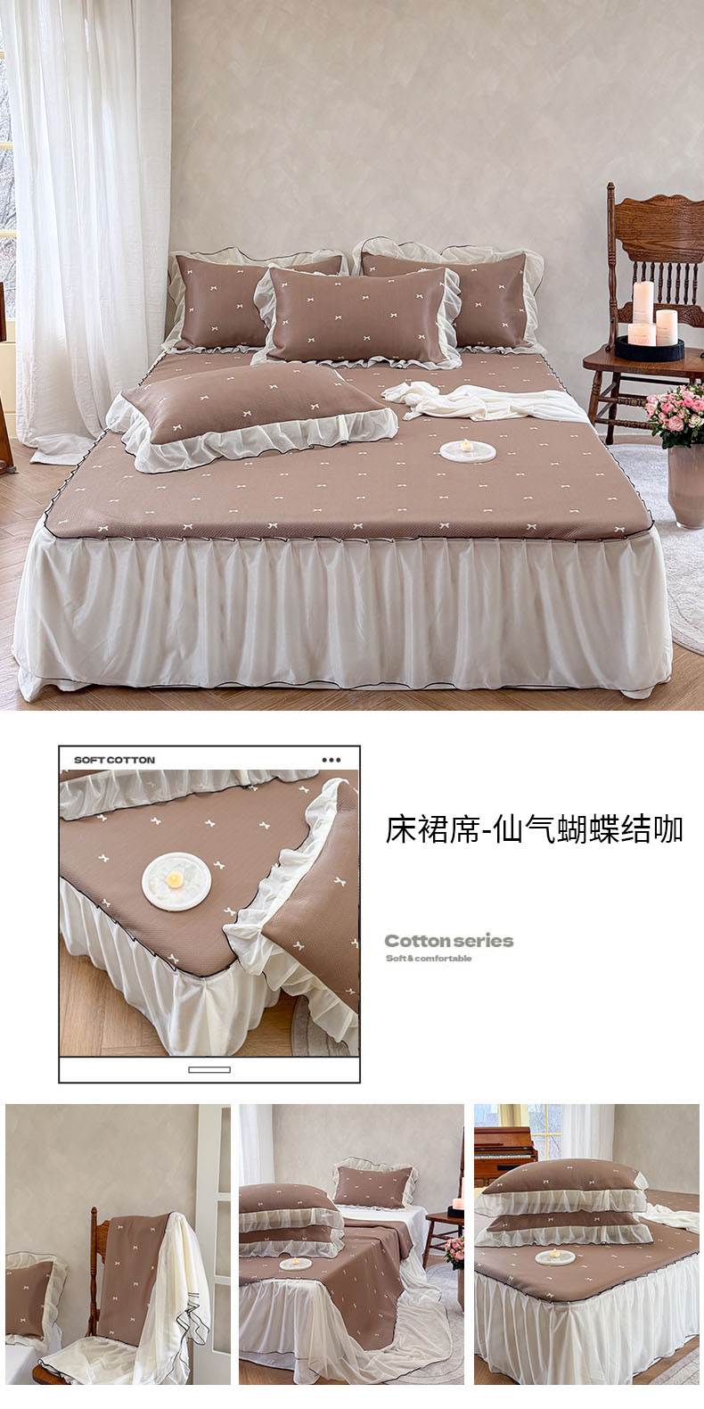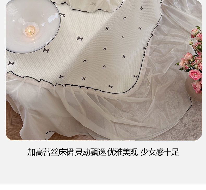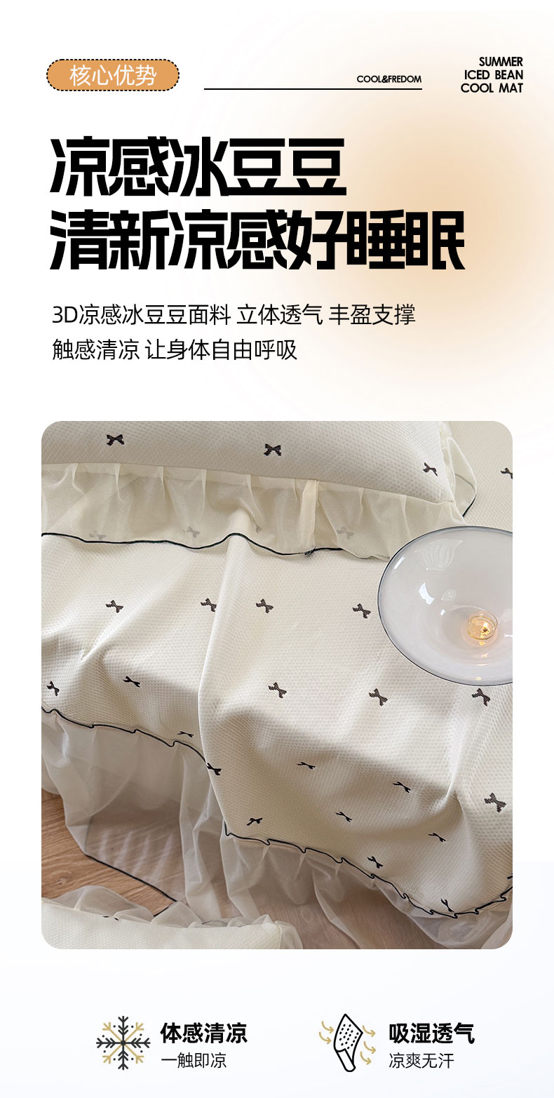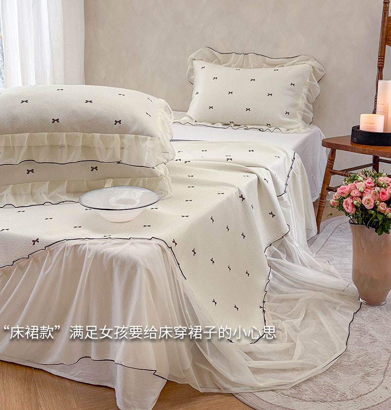 当前位置: 91家纺网 > 商品网购 > 床上用品 > 凉席 > 凉席套件 > 桃子家居 2026新款A类韩系仙气公主风PE凉感中分子床裙凉席蕾丝花边蝴蝶结乙纶豆豆凉席系列三件套 床裙席-仙气蝴蝶结奶白