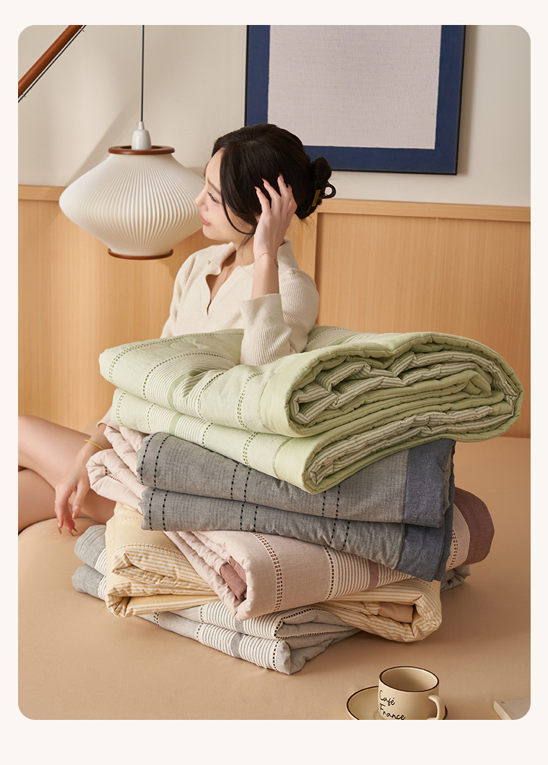 (总)简如 2026新款里外全棉色织提花夏凉被夏被空调被四件套素条系列,素条-粉,素条-灰,素条-咖,素条-蓝,组合图仅供参考不可下单
