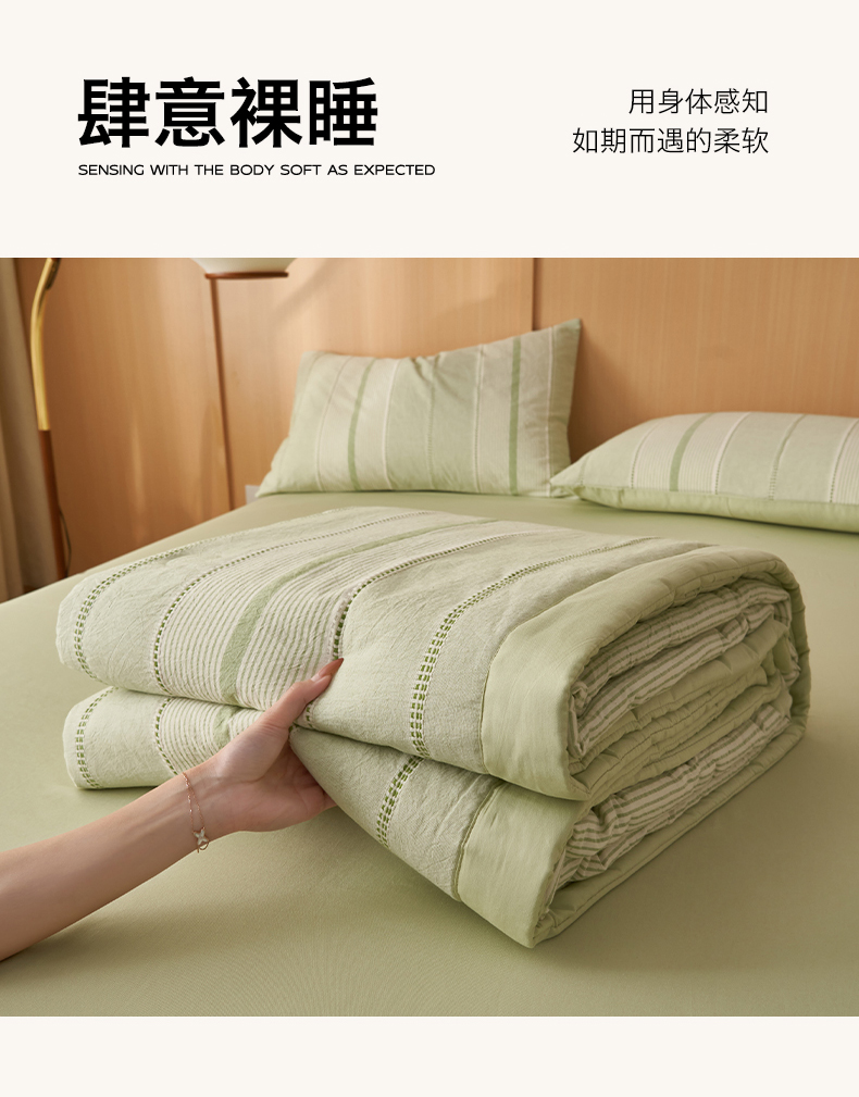 (总)简如 2026新款A类全棉双层纱皱皱纱夏被四件套-时予系列,时予-本白,时予-粉,时予-黄灰,时予-桔兰,时予-卡其,时予-奶茶粉,时予-水绿