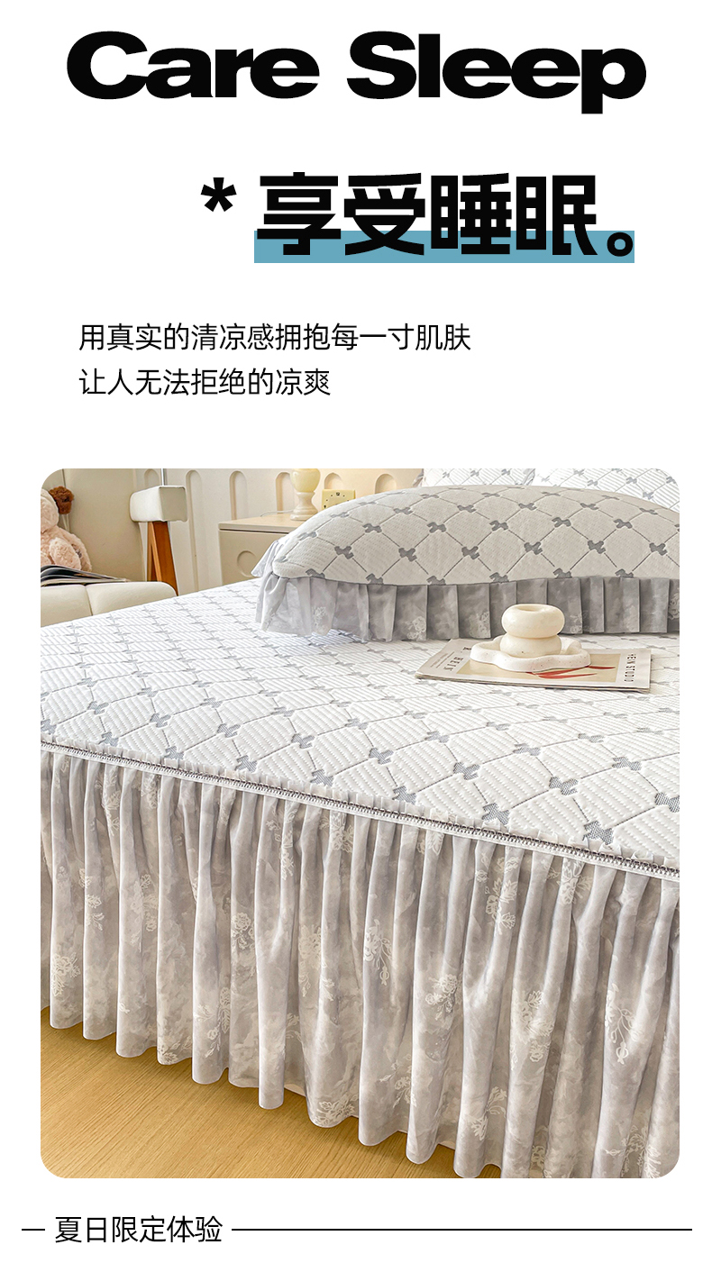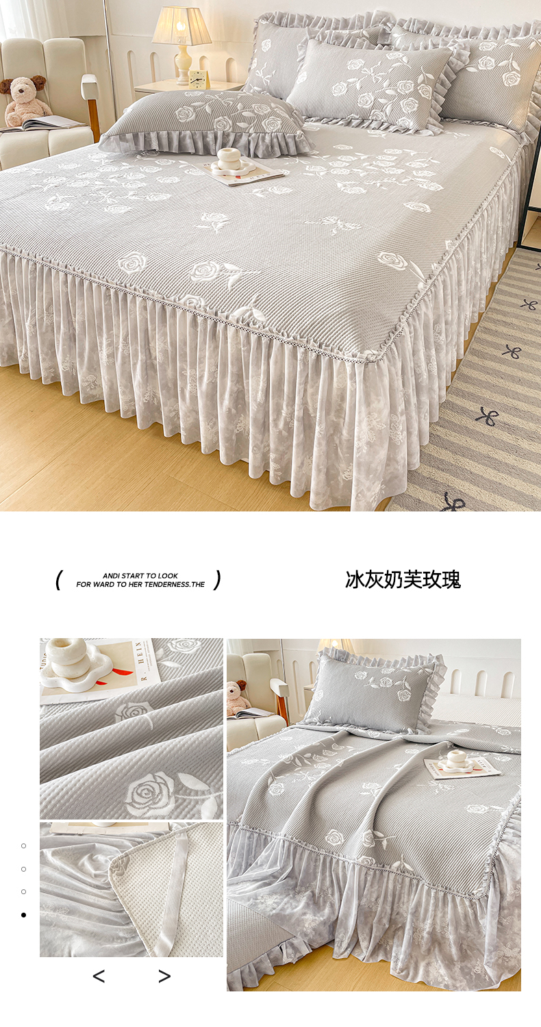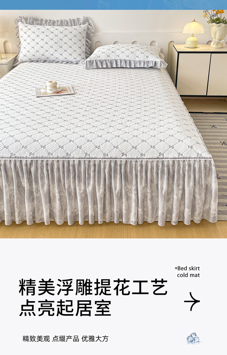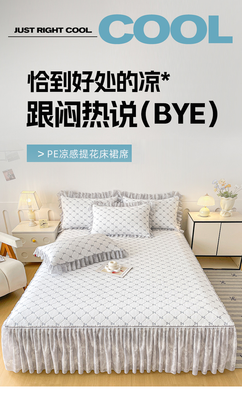(总)莱凯家纺 2026新款550gPE提花床裙款凉席席子,雾影玫瑰-灰,雾影玫瑰-粉,雾影玫瑰-蓝,雾影玫瑰-绿,小马菱格,冰灰奶芙玫瑰,冰蓝奶芙玫瑰,浅茶枝语