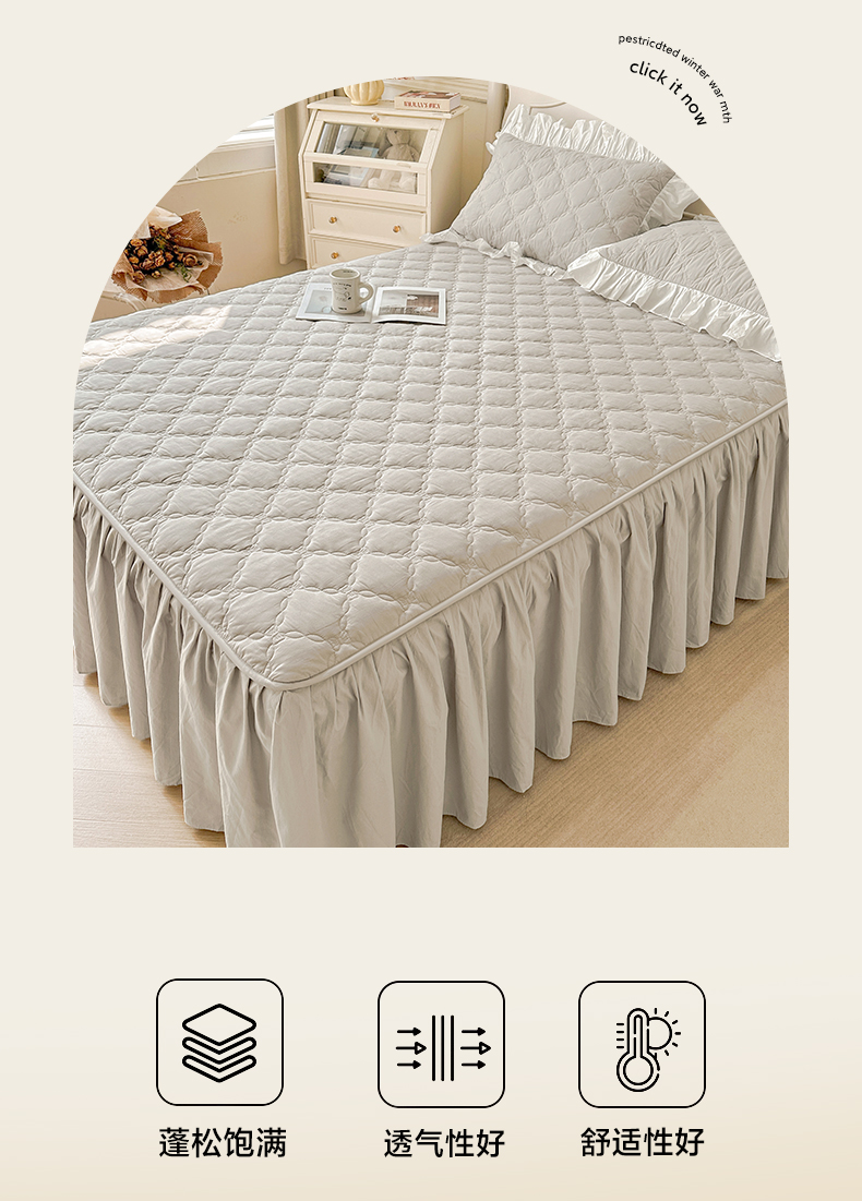 • 91家纺网 家纺一手货源 找家纺 (总)佳笠家居 2026春夏新款A类韩版全棉水洗棉新疆棉花少女风床裙单件床裙单品单床裙-模特图,床裙款-枫舞灰,床裙款-贵族白,床裙款-晴空蓝,床裙款-象牙黄,床裙款-星空紫,床裙款-芝夏粉