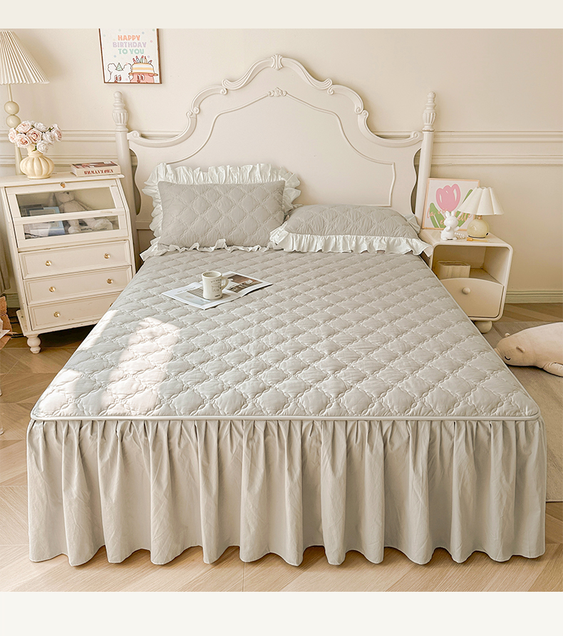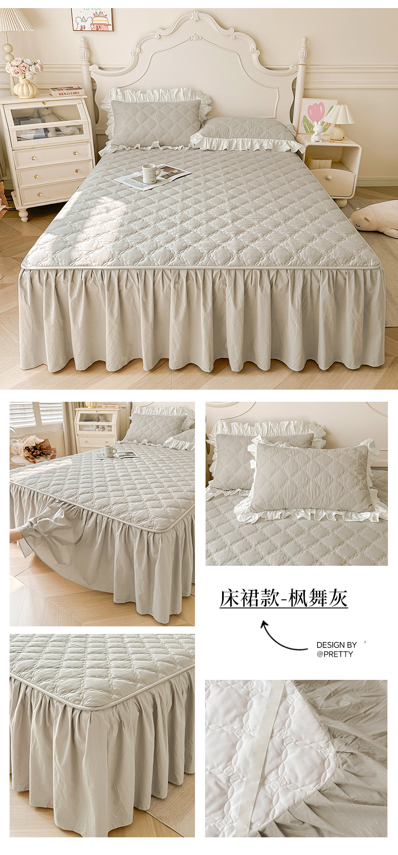• 91家纺网 家纺一手货源 找家纺 佳笠家居 2026春夏新款A类韩版全棉水洗棉新疆棉花少女风床裙单件床裙单品单床裙-床拍图 床裙款-枫舞灰