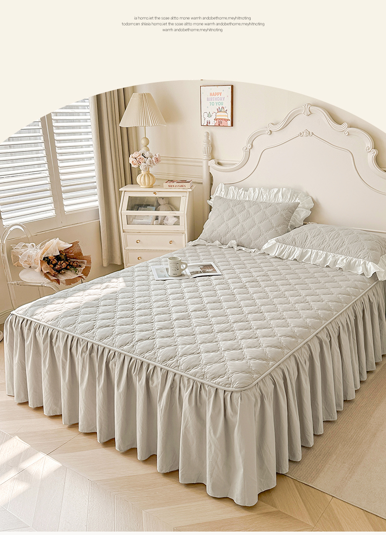 • 91家纺网 家纺一手货源 找家纺 (总)佳笠家居 2026春夏新款A类韩版全棉水洗棉新疆棉花少女风床裙单件床裙单品单床裙-模特图,床裙款-枫舞灰,床裙款-贵族白,床裙款-晴空蓝,床裙款-象牙黄,床裙款-星空紫,床裙款-芝夏粉