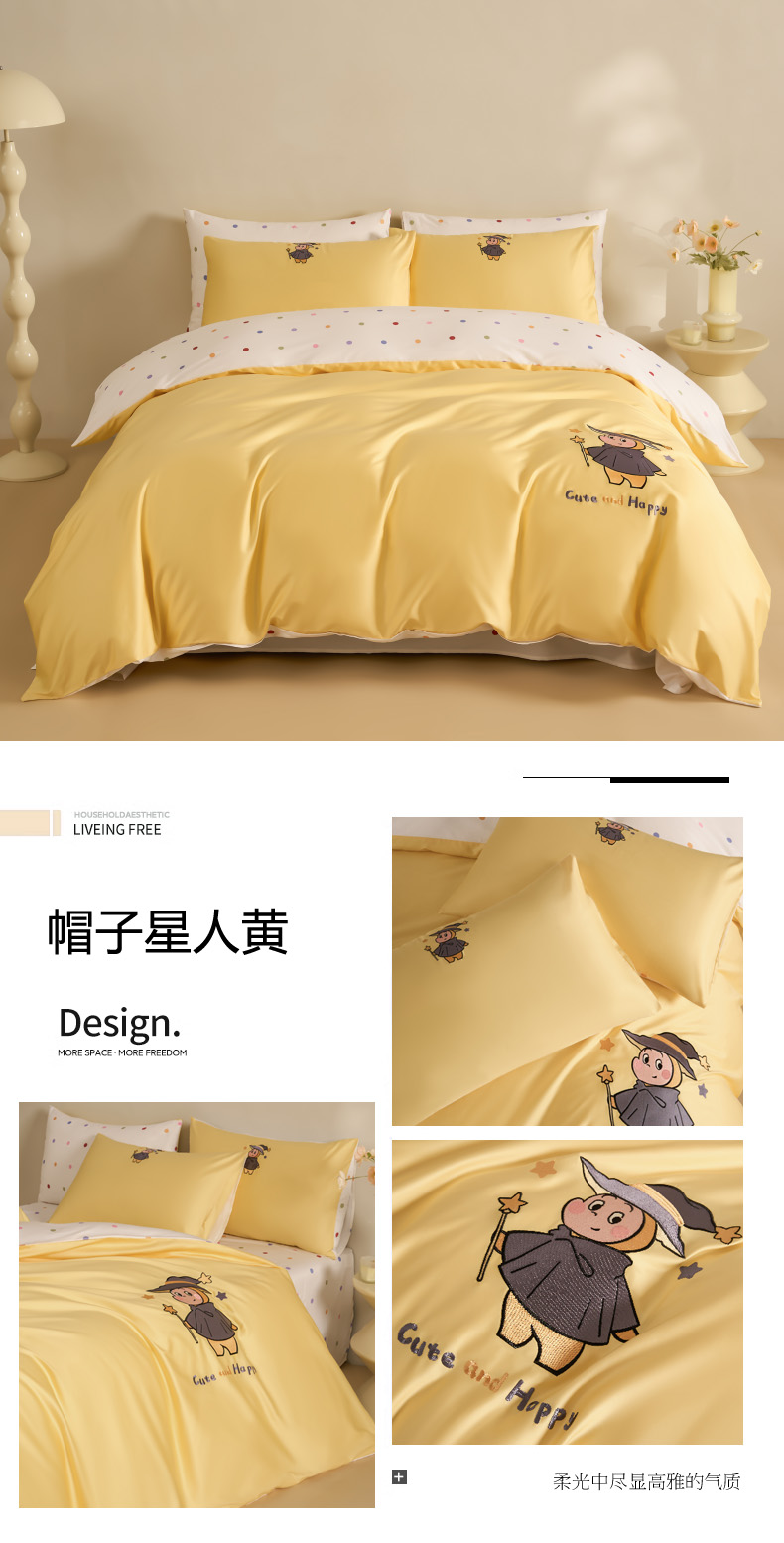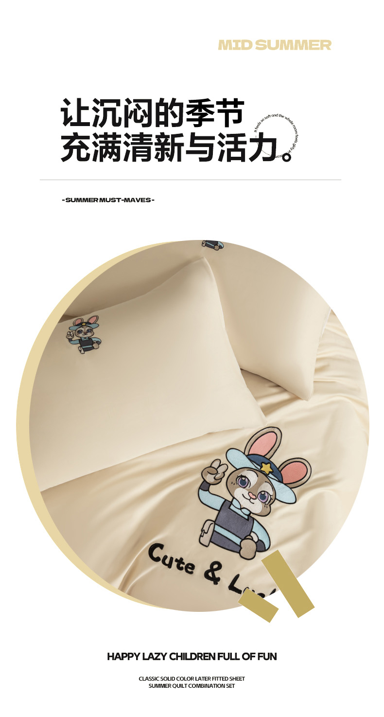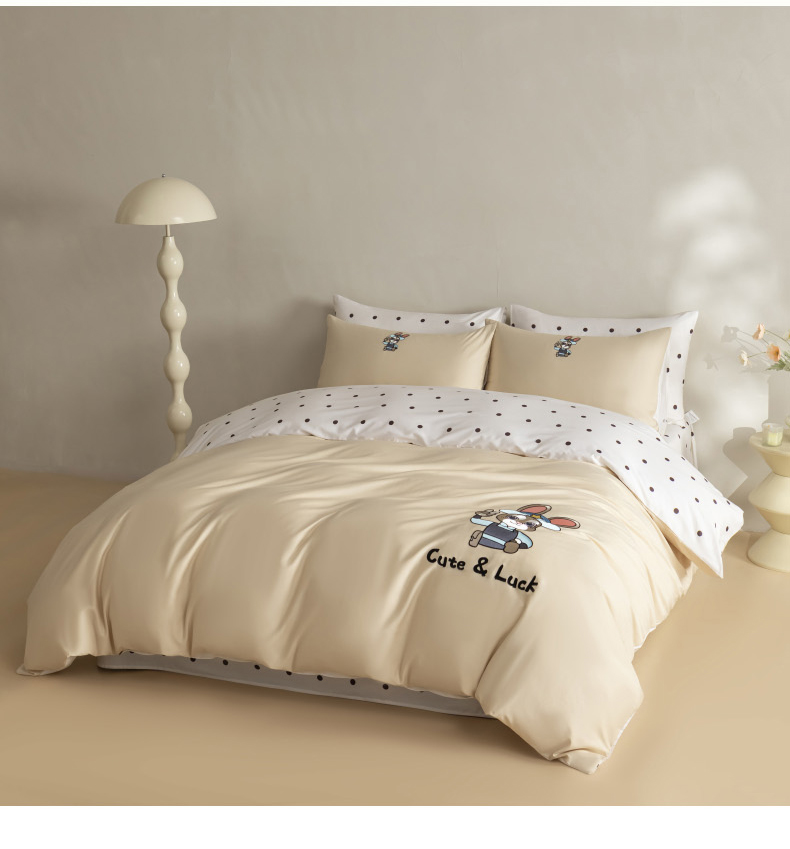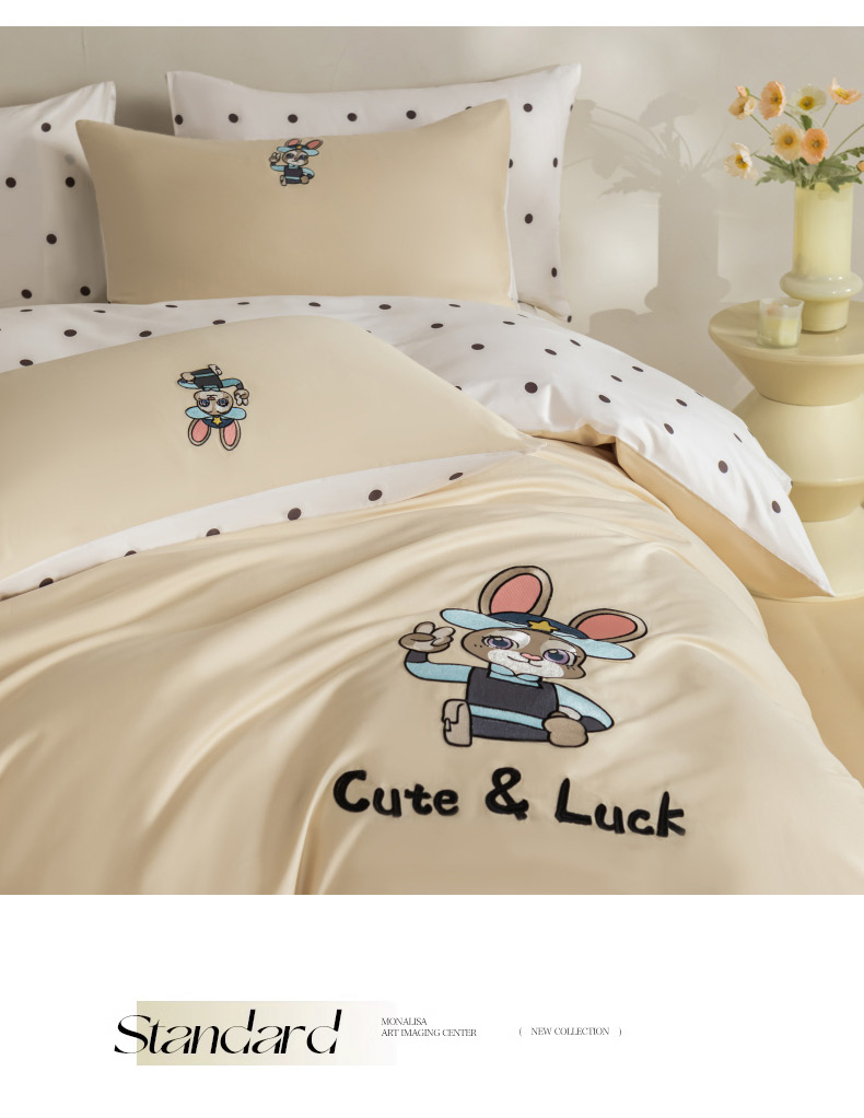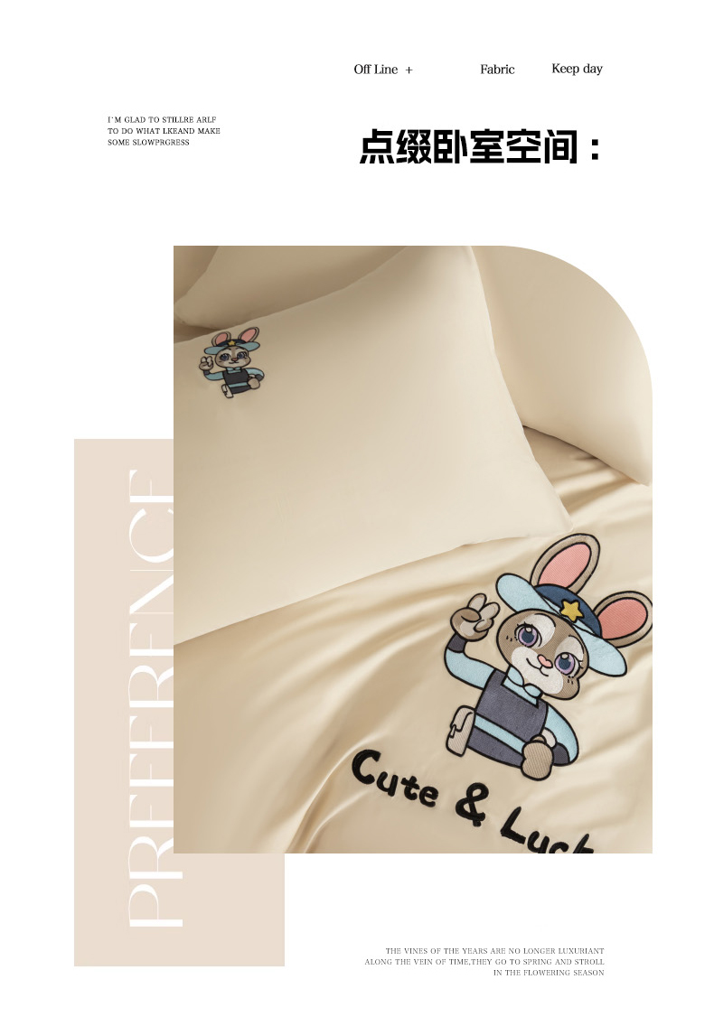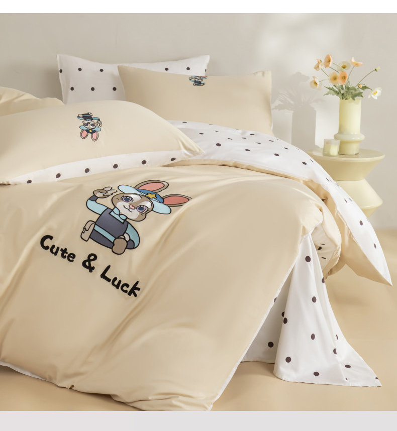当前位置: 91家纺网 > 商品网购 > 床品套件 > 四件套 > 全棉普通四件套 > 慕尚家纺 2026春夏新款全棉纯棉50s贡缎绣花四件套 兔警官米咖