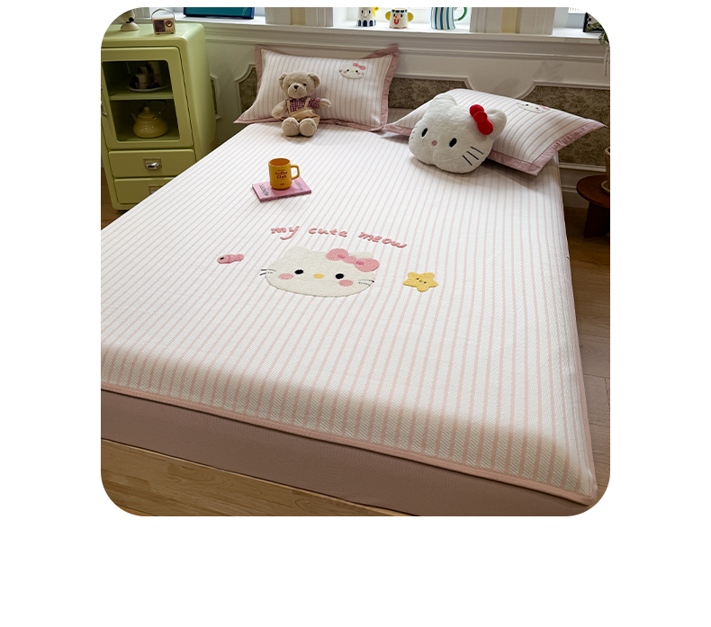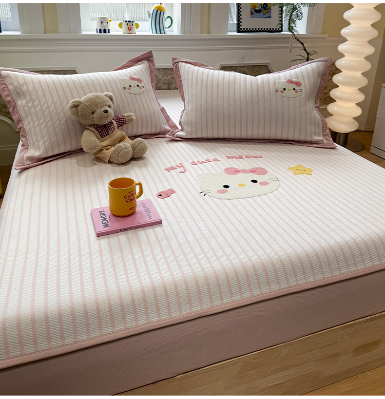商品名称:雅居纺家纺 2026春夏新款PE凉感提花绣花凉席席子 平席-爱恋猫咪