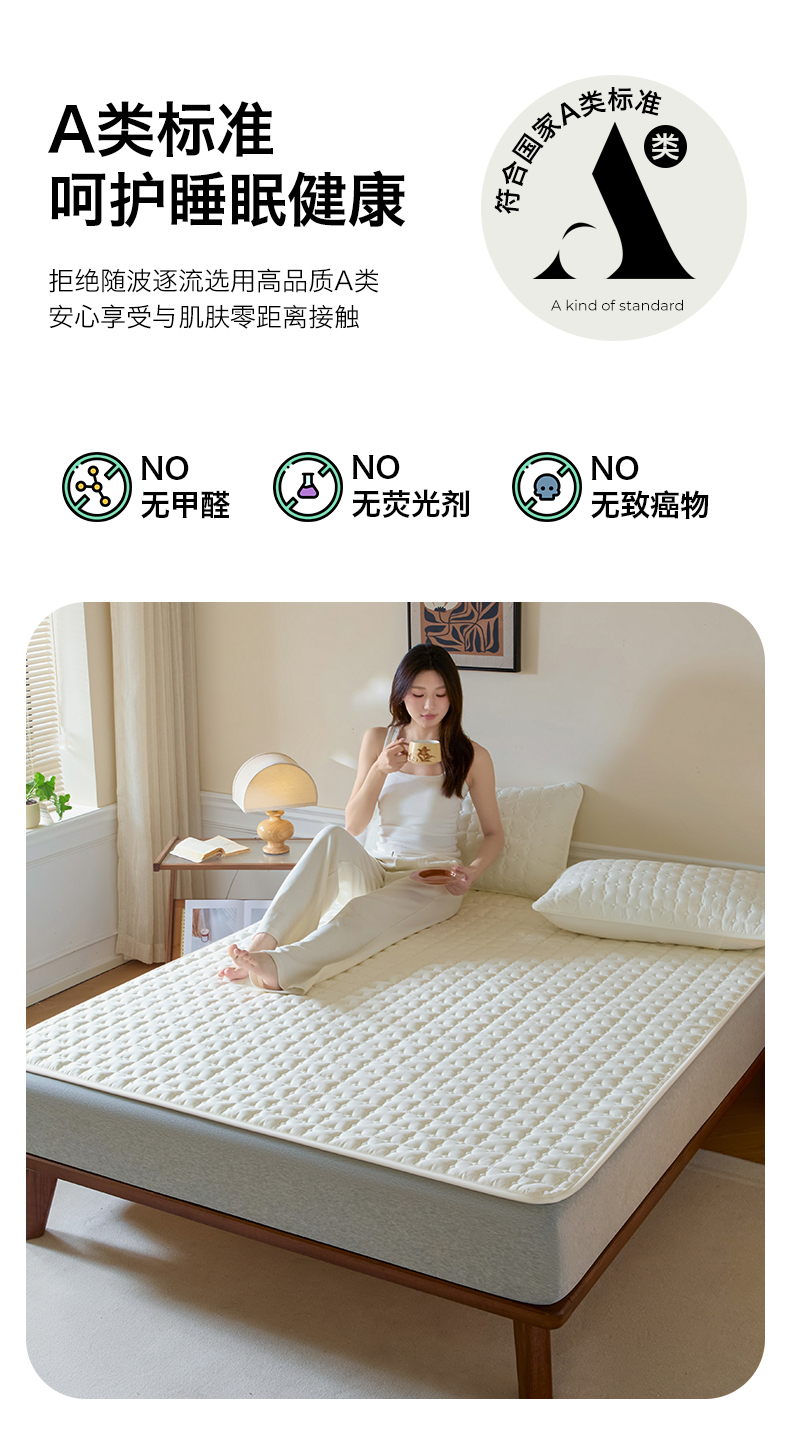 (总)居眠 2026新款防水防滑夹棉床护垫-星格,星格-白,星格-粉,星格-灰,星格-卡,叠拍