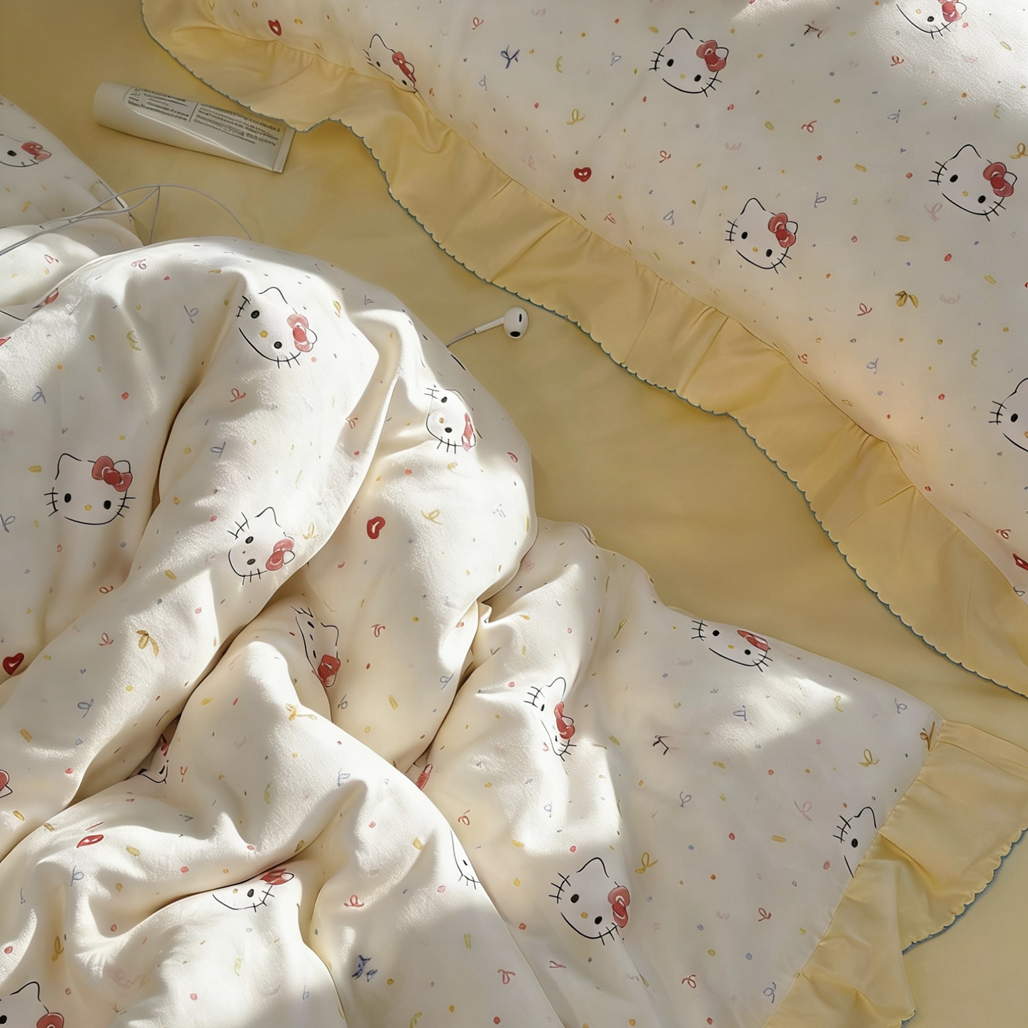 当前位置: 91家纺网 > 商品网购 > 床品套件 > 四件套 > 全棉普通四件套 > 荣轩家居 2026新款三丽鸥正版授权韩式小月牙边全棉纯棉双层纱四件套(铺床版) 绵绵奶芙