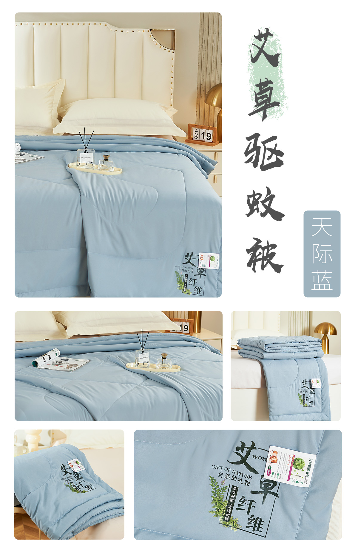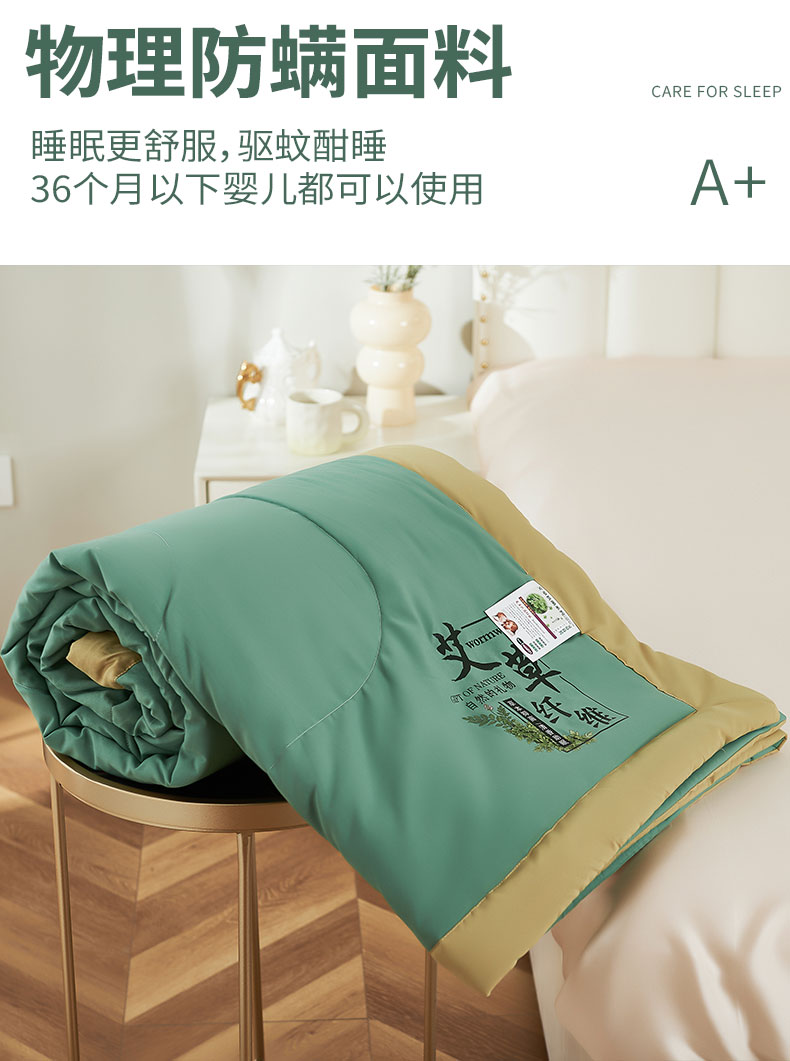 商品名称:憨豆家纺 2026新款艾草夏被空调被薄被子艾草驱蚊夏凉被礼品被子 橄榄绿