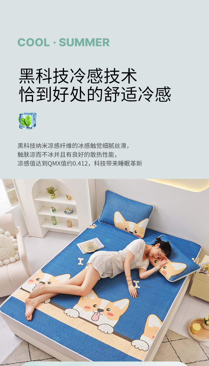 (总)佳鸿家纺 2026新款卡通乳胶凉席二件套三件套冰丝软席空调席跨境爆款,抱抱,柴犬,柯基,恐龙,萝卜兔,趴趴狗,太空星球