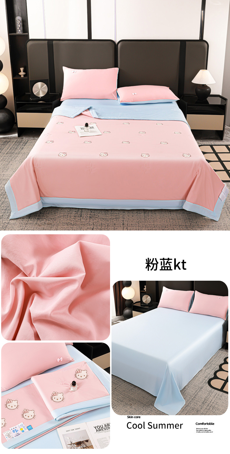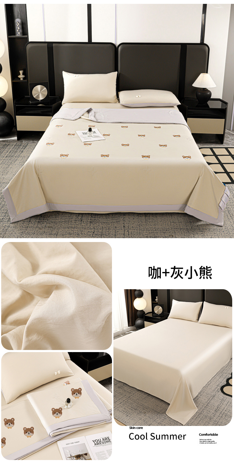 (总)佳鸿家纺 2026新款A类凉感冰柔丝刺绣手包边夏凉被夏被四件套 提供质检报告,薄荷樱桃,冰蓝kt,粉蓝kt,粉紫蝴蝶结,灰紫蝴蝶结,咖+灰小熊,奶咖小熊