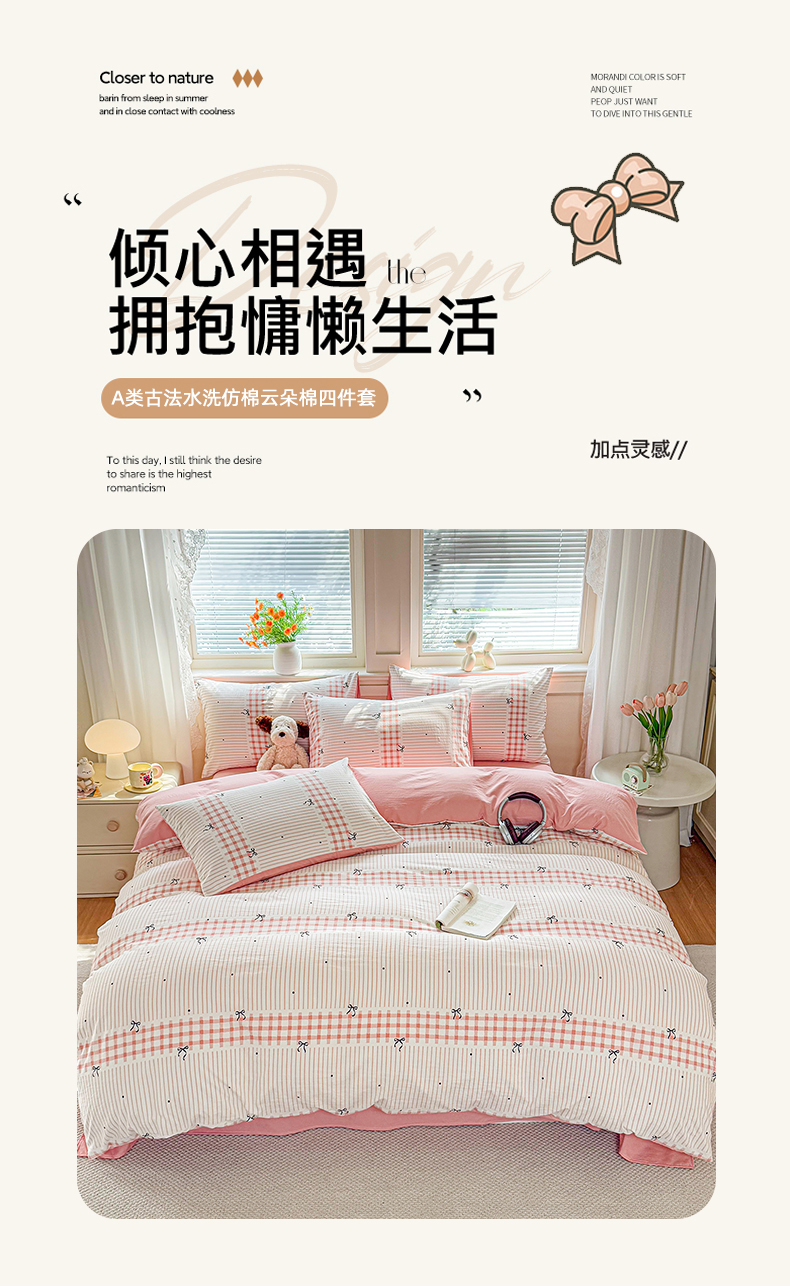 当前位置: 91家纺网 > 商品网购 > 床品套件 > 四件套 > 其它四件套 > 铭浩家纺 2026春夏新款A类古法水洗云朵四件套 香湘