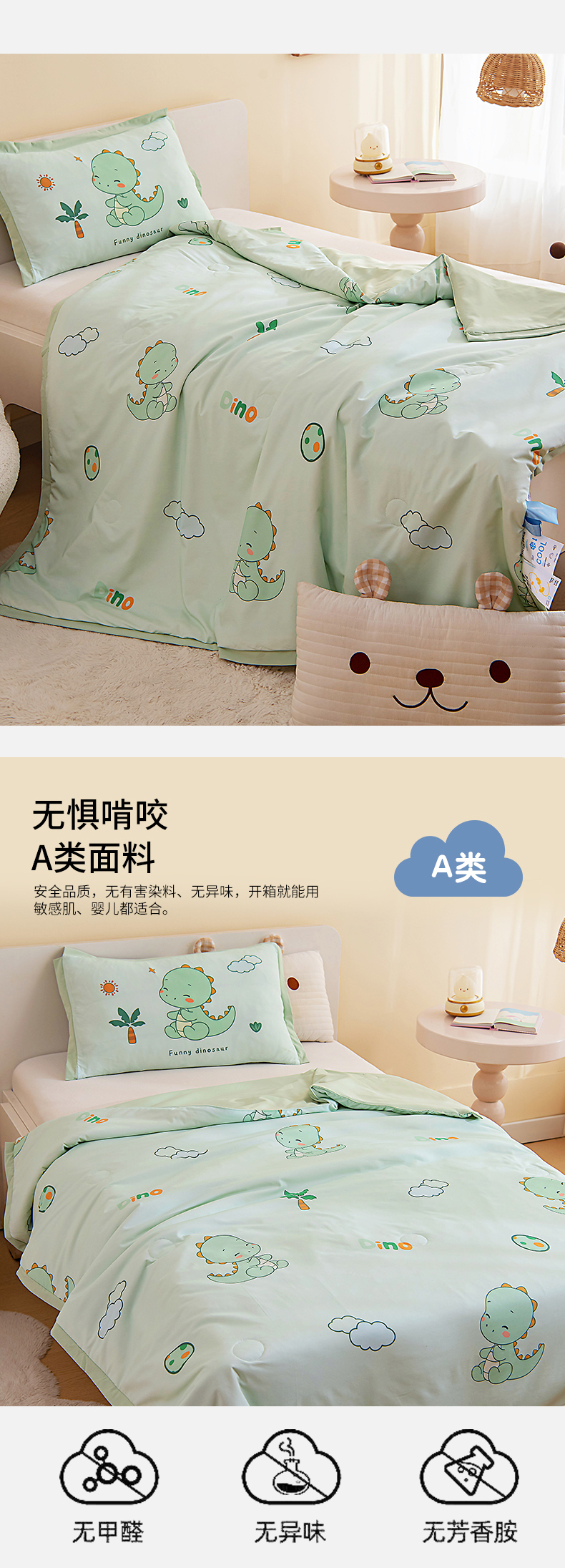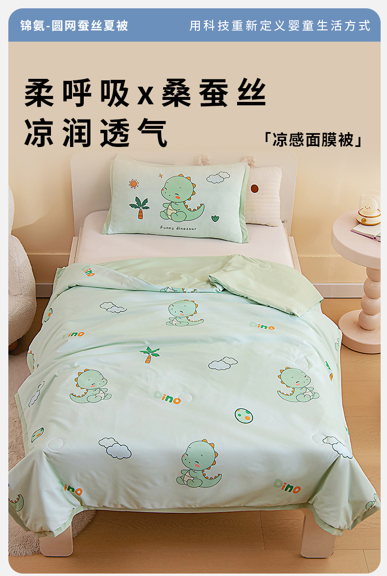 商品名称:御棉坊2026新款A类锦氨数码印花圆网蚕丝儿童夏凉被幼儿园午睡被宝宝夏季空调被薄被子 锦氨-恐龙宝贝