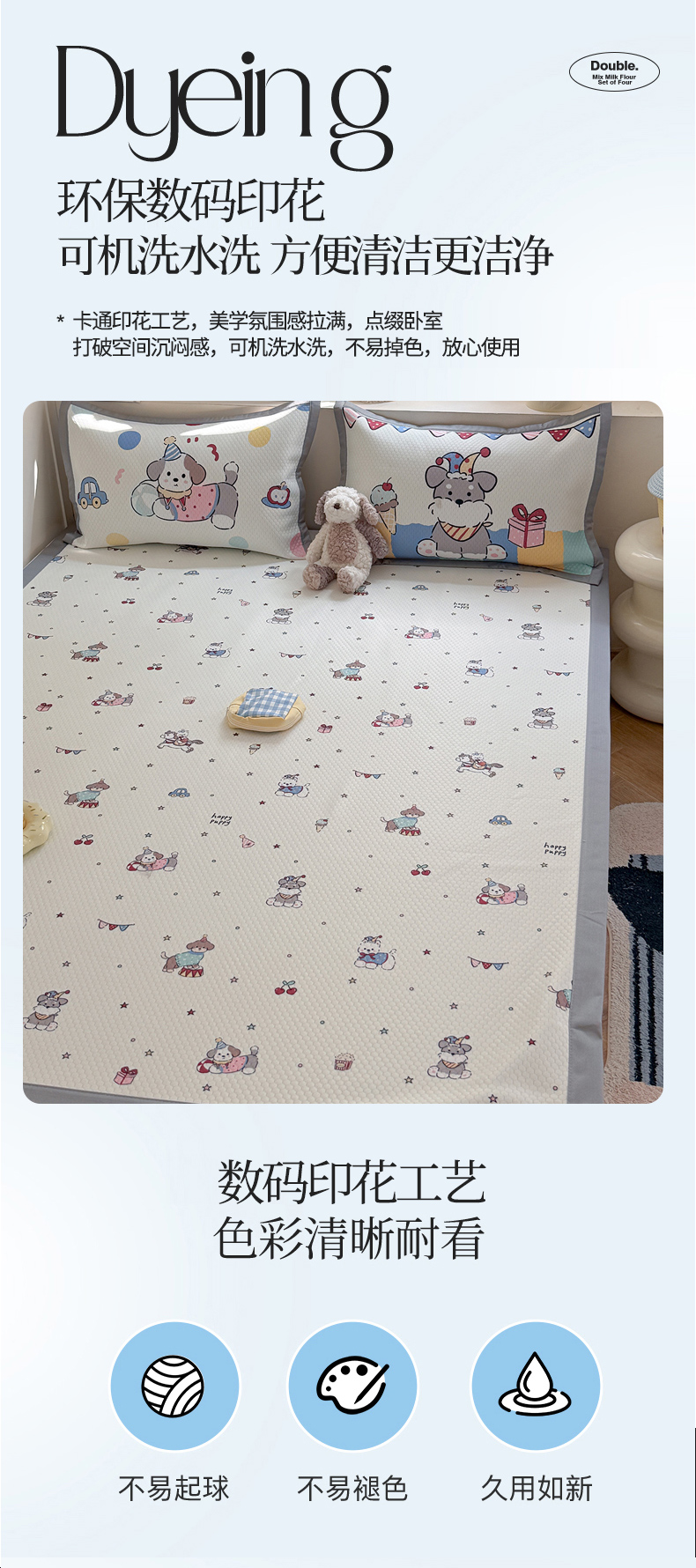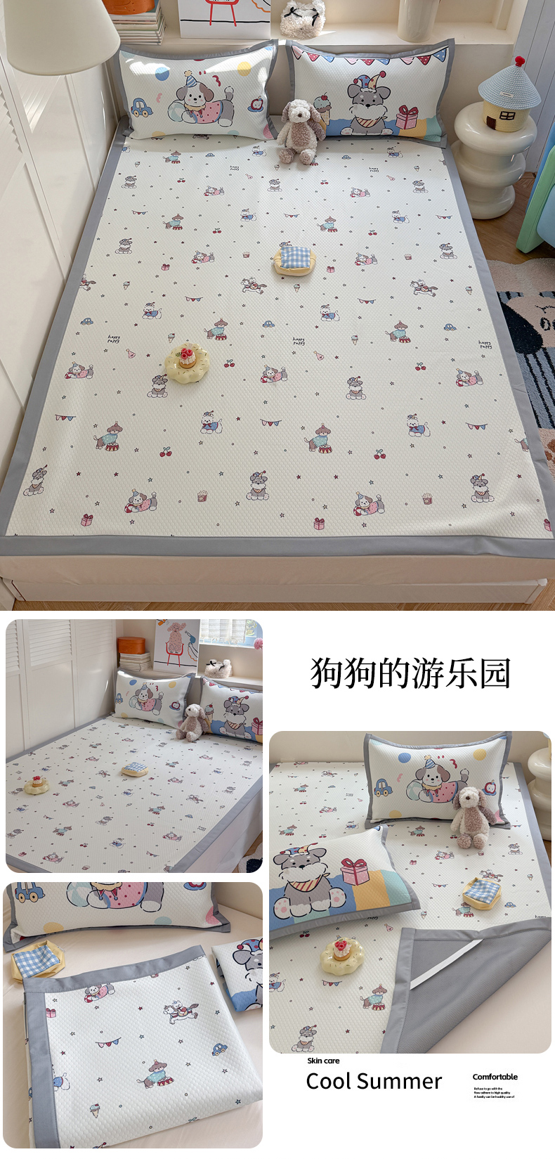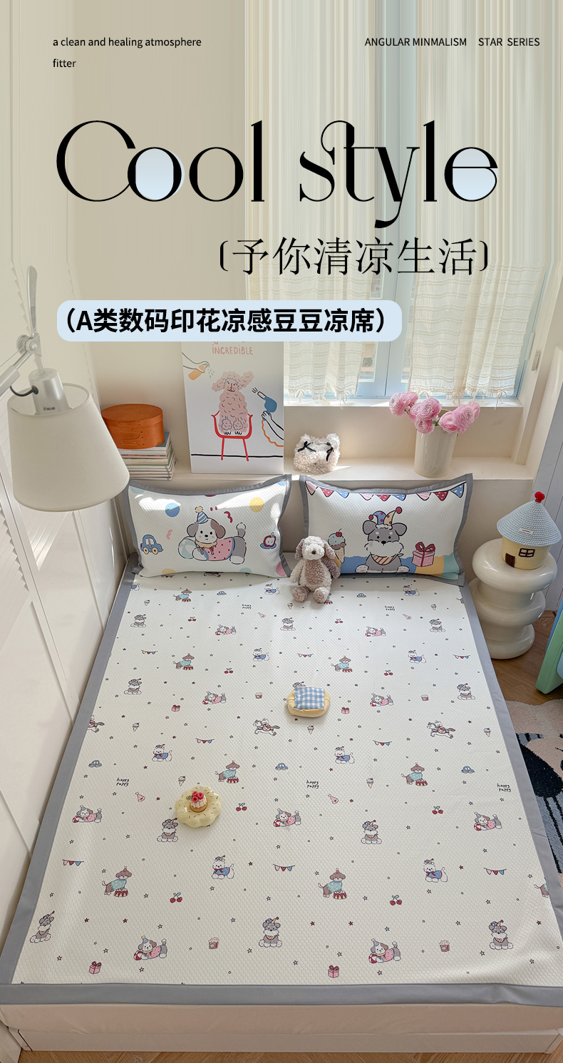 商品名称:Sweet dreams甜梦 2026新款数码印花大板凉感豆豆席 狗狗的游乐园