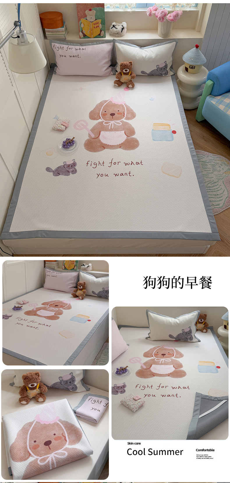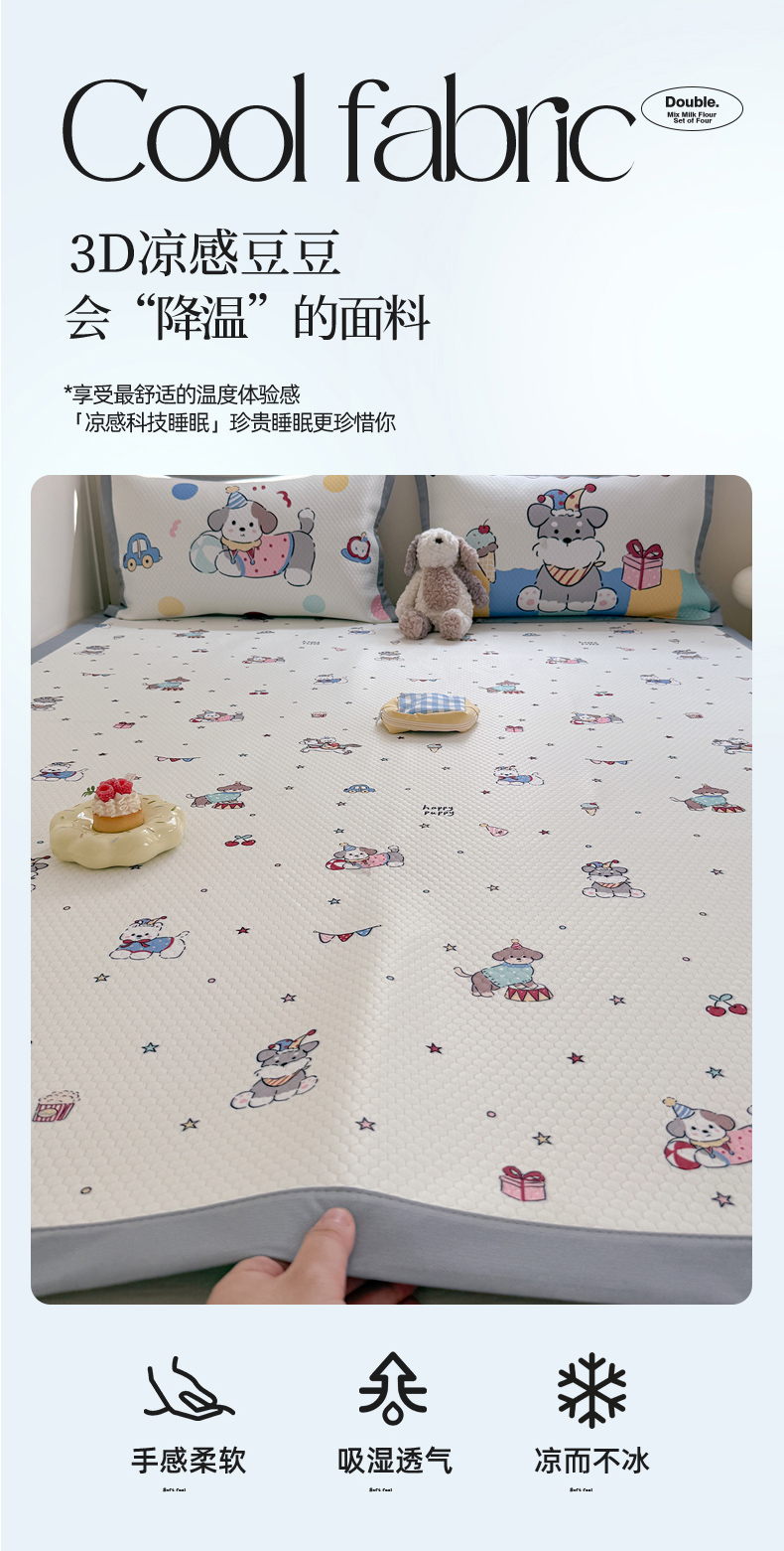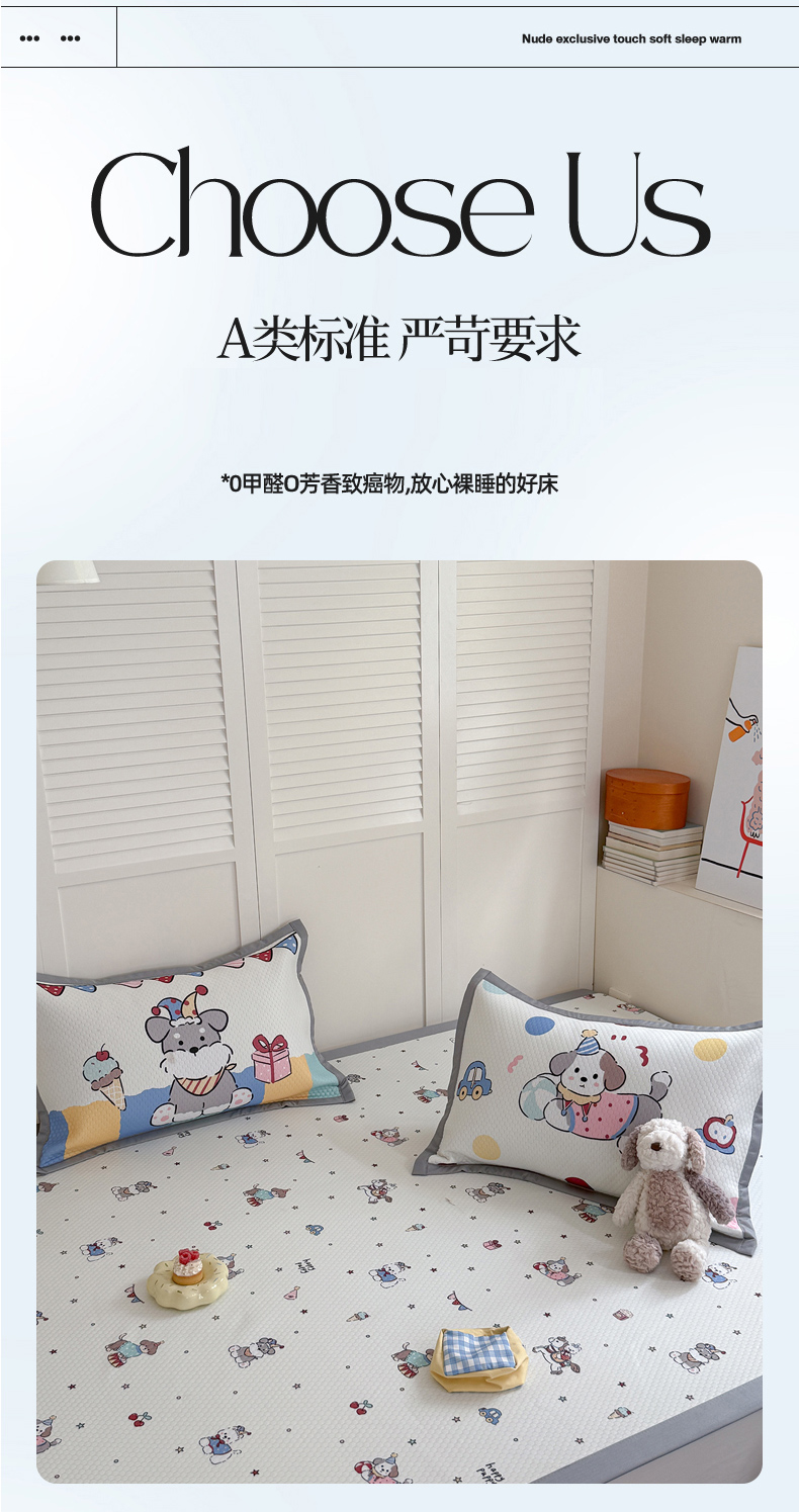 (总)Sweet dreams甜梦 2026新款A类锦氨异性贴布高端豆豆凉席-场景1,抱抱熊,调皮狗,嘎嘎鸭,哈哈蛙,美梦猫