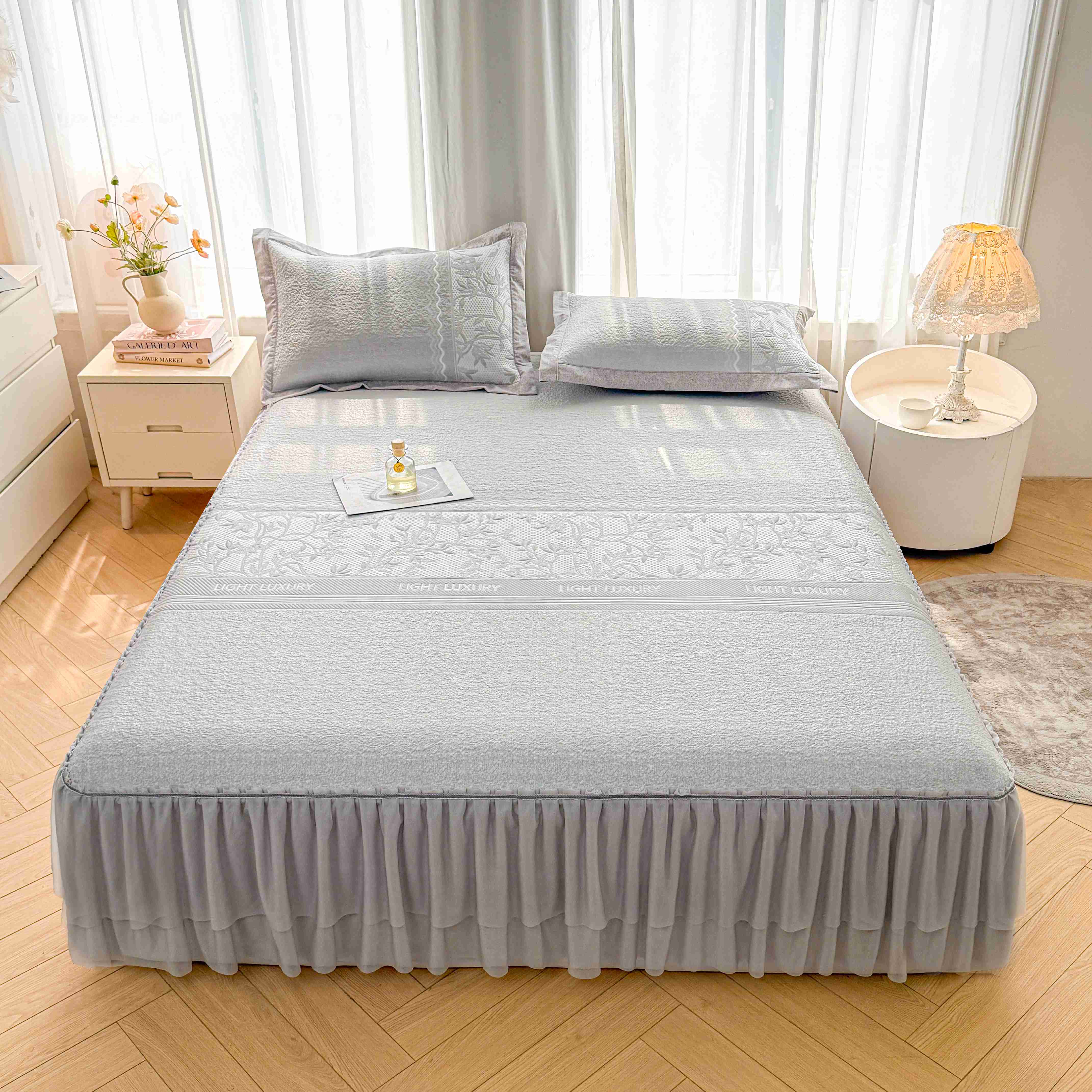 商品名称:席匠 2026新款LUX·奢序系列床裙款凉席席子 雾蓝