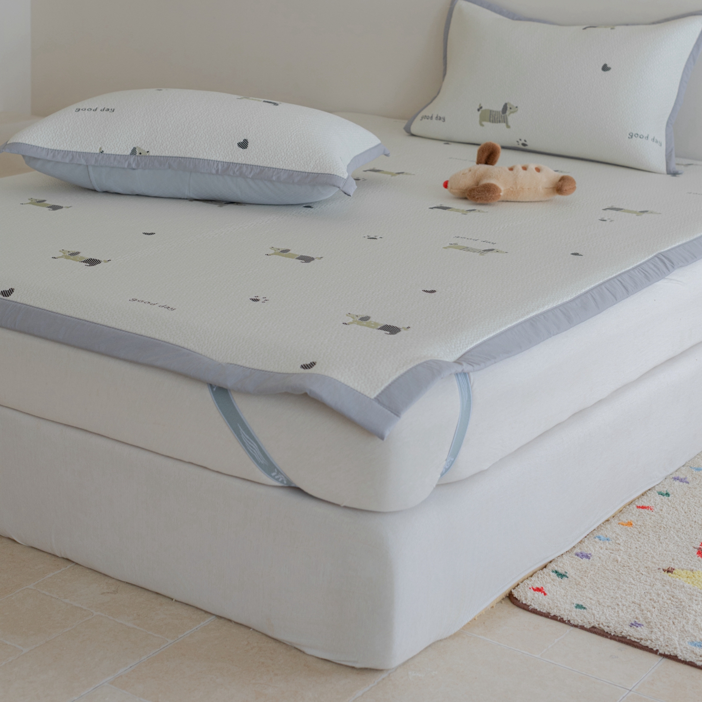 云上 2026新款冷萃丝三明治凉感席凉席席子-卡通系列 小狗床笠-灰绿