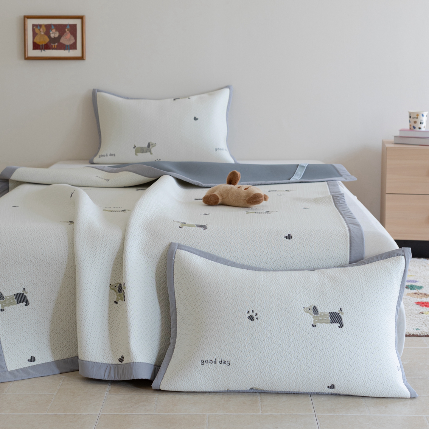 商品名称:云上 2026新款冷萃丝三明治凉感席凉席席子-卡通系列 小狗床笠-灰绿