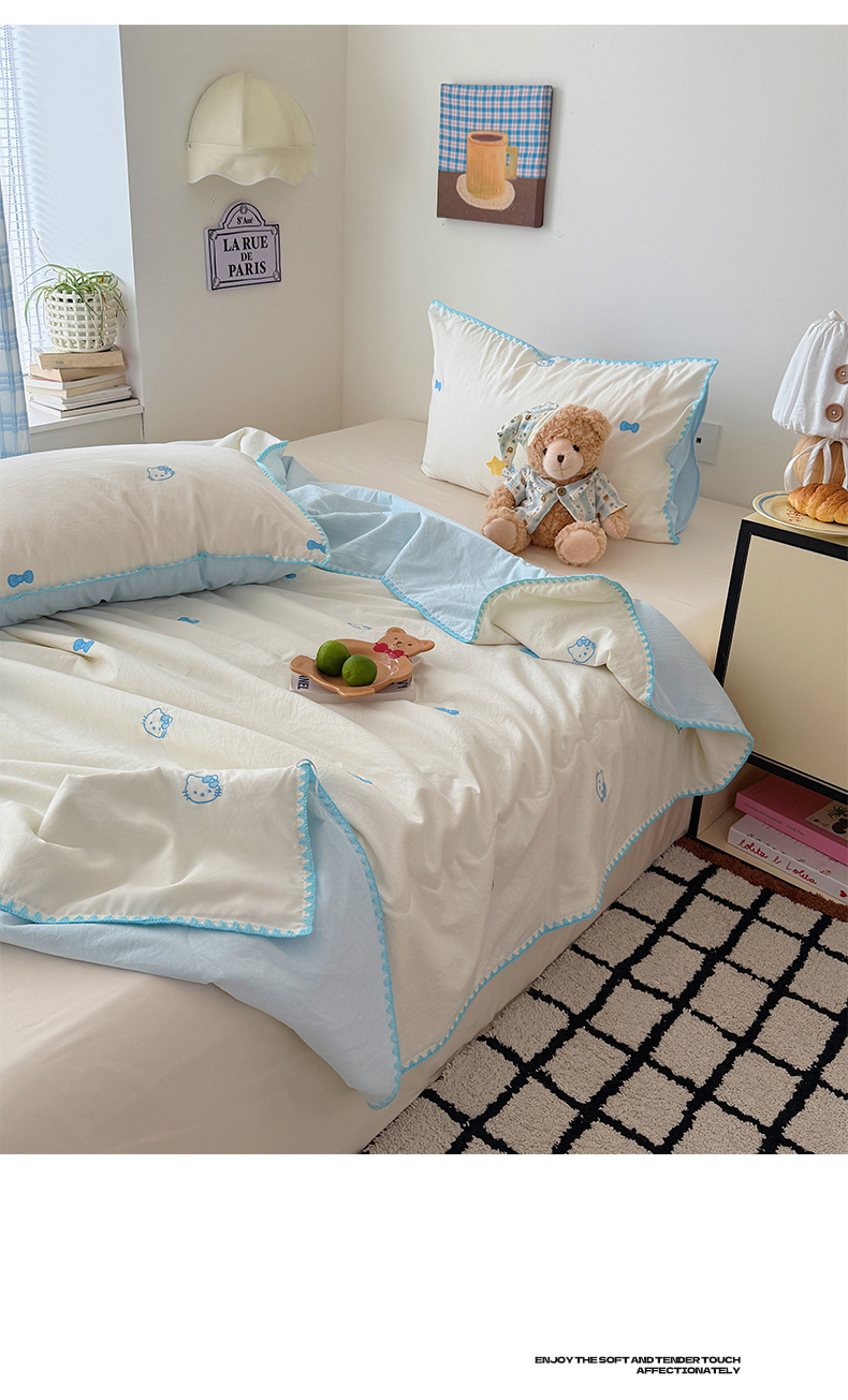 顾里家纺 2026新款韩风刺绣云朵棉夏被夏凉被空调被 蓝樱桃
