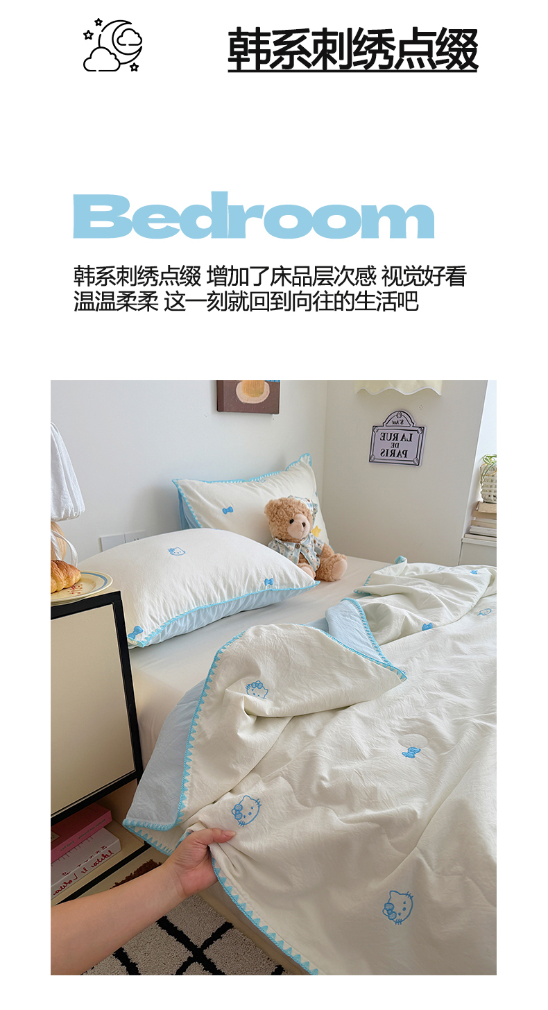 商品名称:顾里家纺 2026新款韩风刺绣云朵棉夏被夏凉被空调被 治愈小象