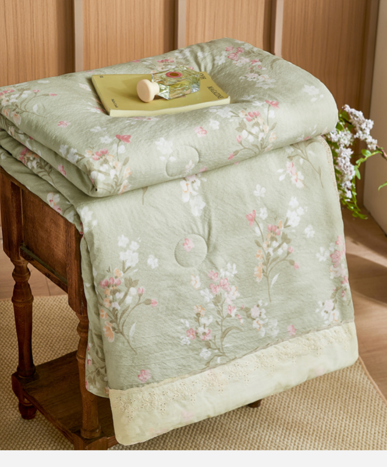 圣比熊 2026新款A类夏天原麻全棉蕾丝花边加厚夏被宿舍双人床仿亚麻被子被芯 清风花叙
