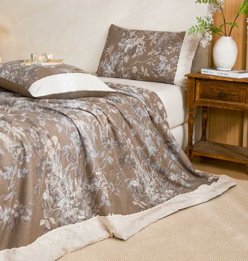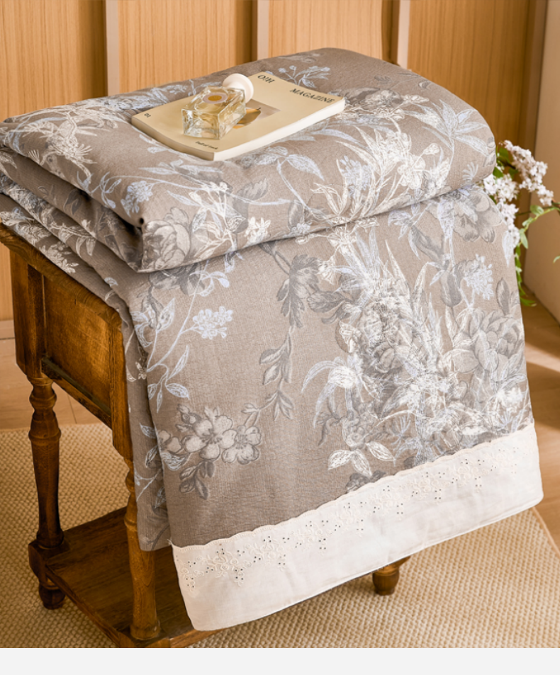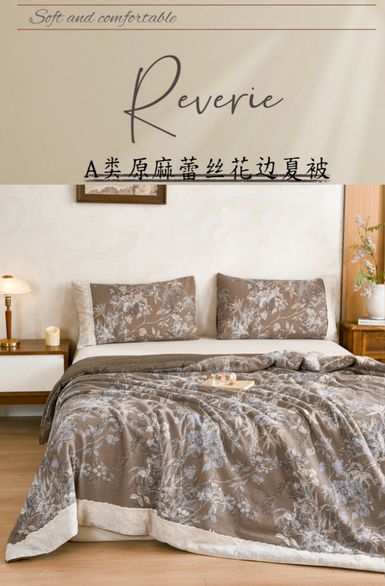 (总)梦舒羽 2026新款A类夏天原麻全棉蕾丝花边加厚夏被宿舍双人床仿亚麻被子被芯,安紫,清风花叙,春风序,繁花,梵希,古堡花园-咖,花与蝶,金枝玉叶,忆秋风