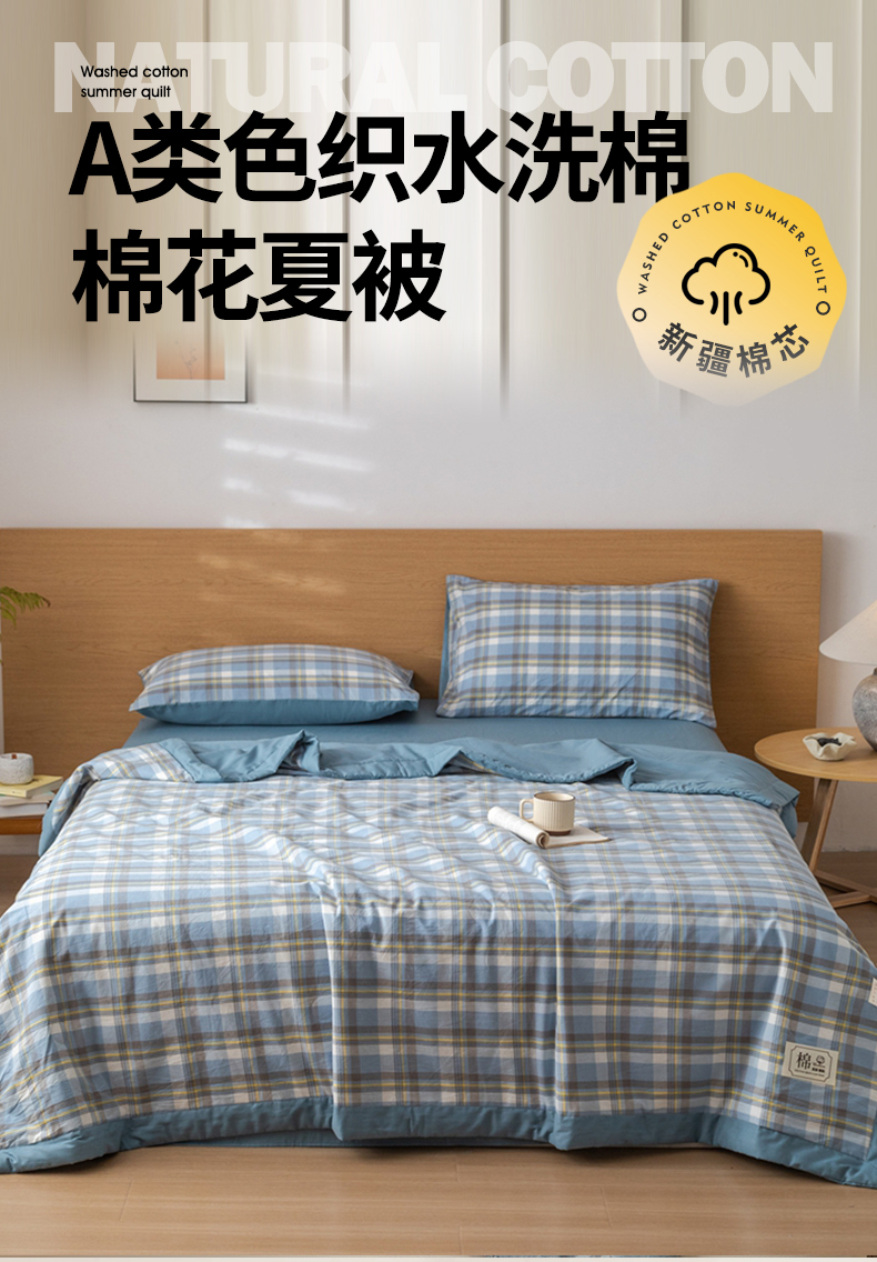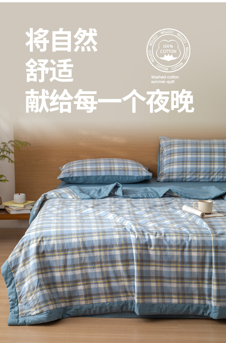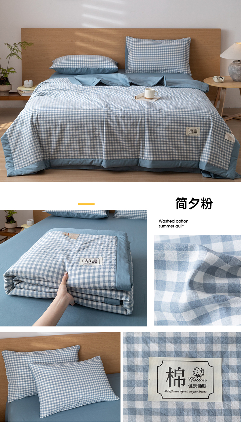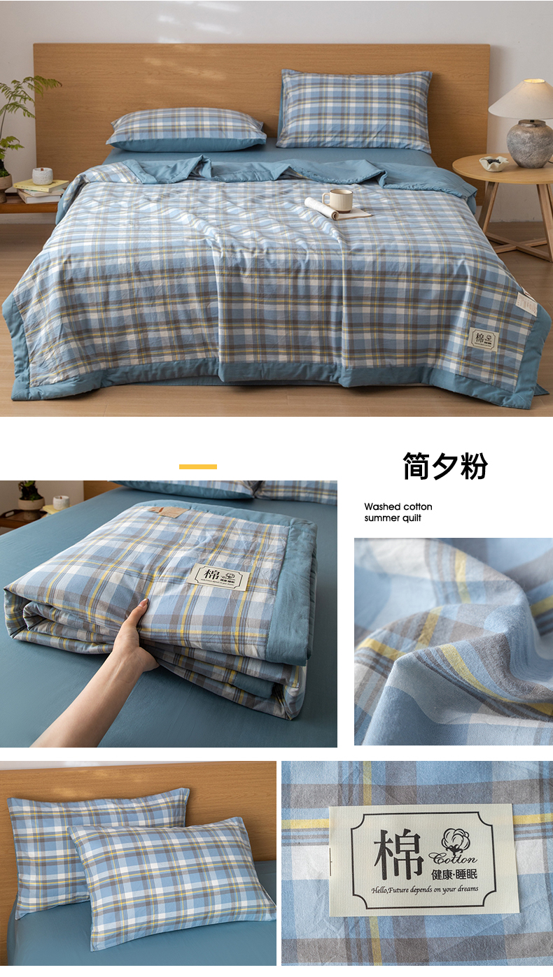 (总)安琪家纺 2026春夏新款色织水洗棉棉花夏被夏凉被空调被,简夕蓝,简夕粉,咖小格,蓝小格,密格蓝,中格粉