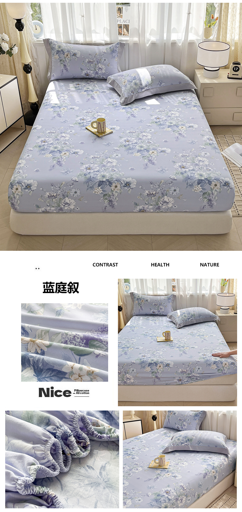 • 91家纺网 家纺一手货源 找家纺 慕木家纺 2026新款A类纯色印花慕丝棉床笠系列(抽空压缩可供跨境)(提供买家秀) 蓝漪