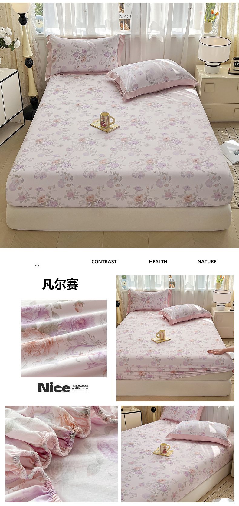 • 91家纺网 家纺一手货源 找家纺 慕木家纺 2026新款A类纯色印花慕丝棉床笠系列(抽空压缩可供跨境)(提供买家秀) 少女粉