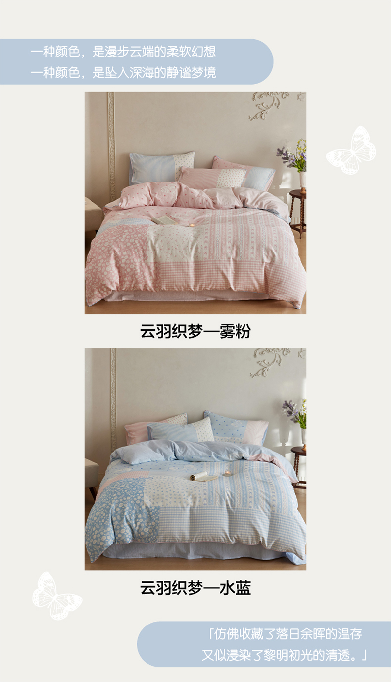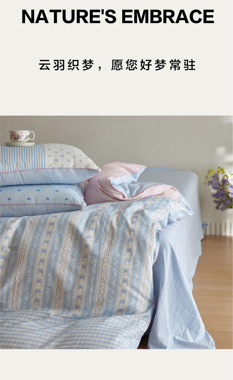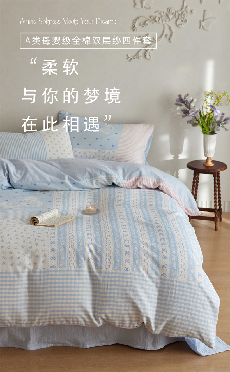 当前位置: 91家纺网 > 商品网购 > 床品套件 > 四件套 > 全棉普通四件套 > (总)风向标家纺 2026新款A类母婴级纯棉双层纱印花四件套-云羽织梦