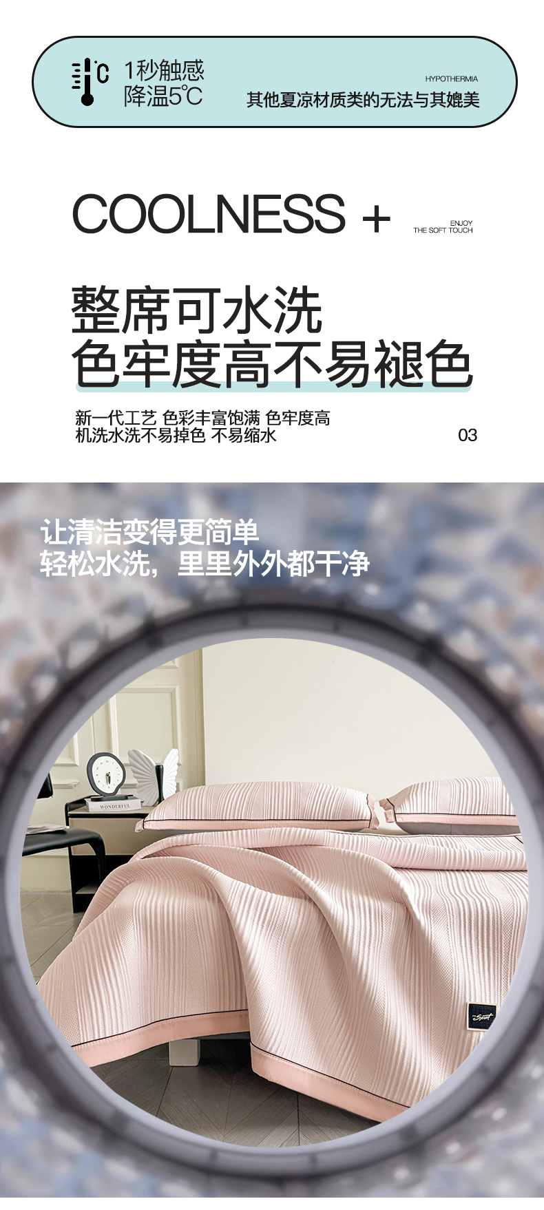 当前位置: 91家纺网 > 商品网购 > 床上用品 > 凉席 > 其他凉席 > 耐思家纺 2026新款A类高克重三明治复合乙纶提花冰豆豆凉席床笠小蛮腰系列(提供买家秀) 小蛮腰-粉床席款