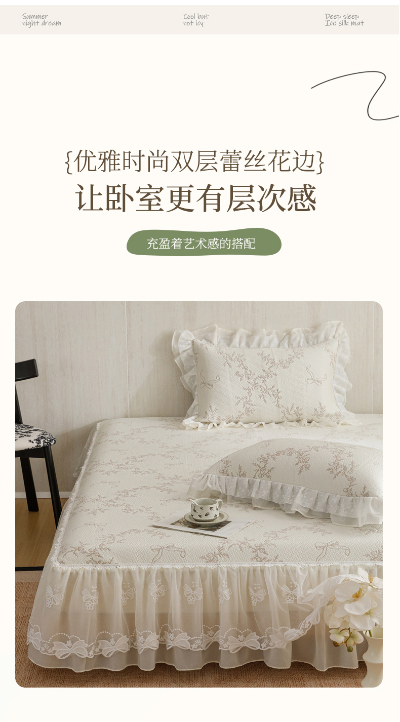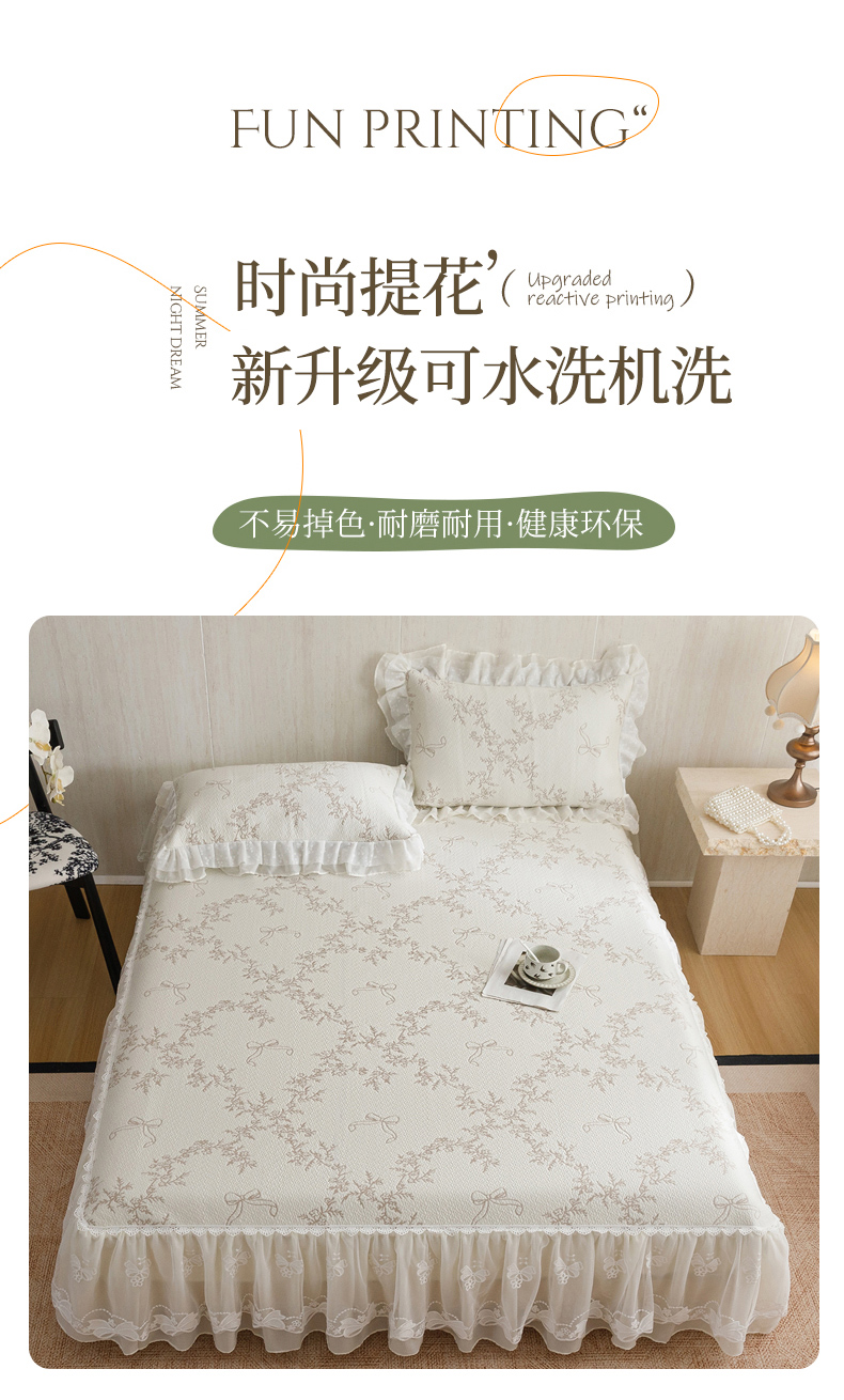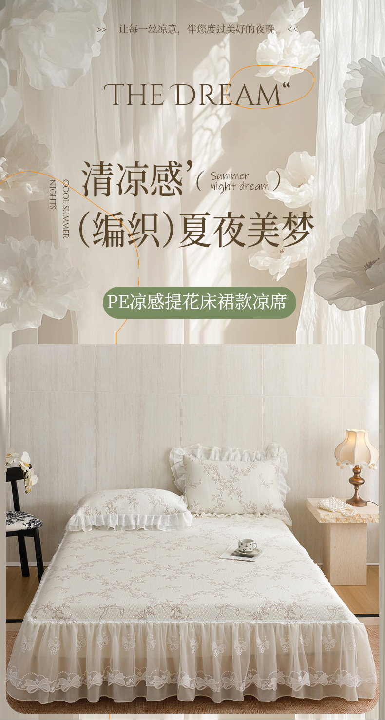 (总)菊上家纺 2026新款PE凉感床裙款凉席夏被夏凉被空调被四件套-清雅之梦,清雅之梦-珍珠白,清雅之梦-抹茶绿,清雅之梦-香芋紫,清雅之梦-樱花粉