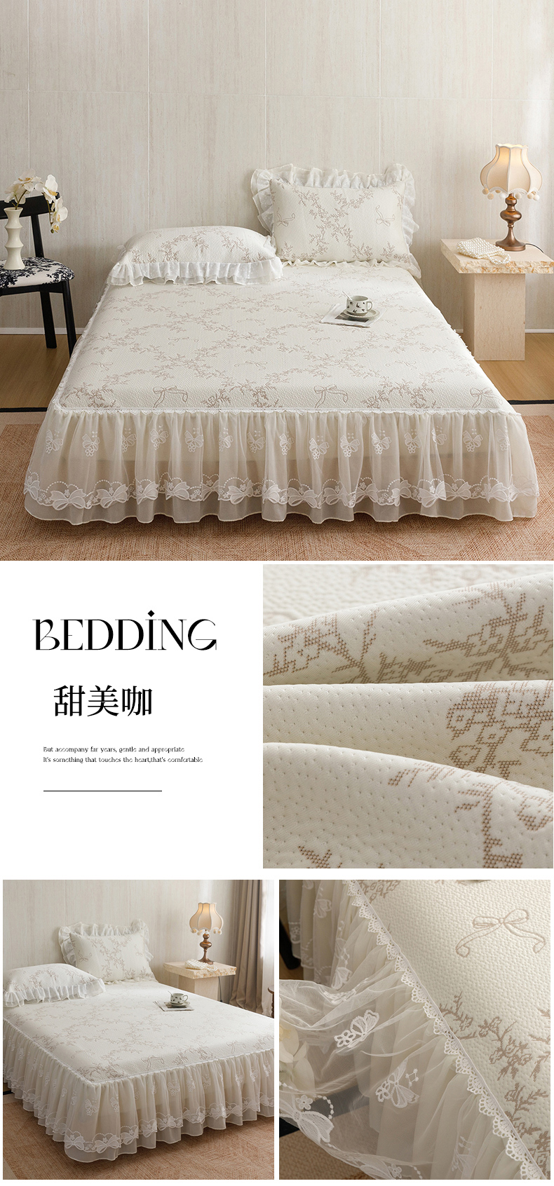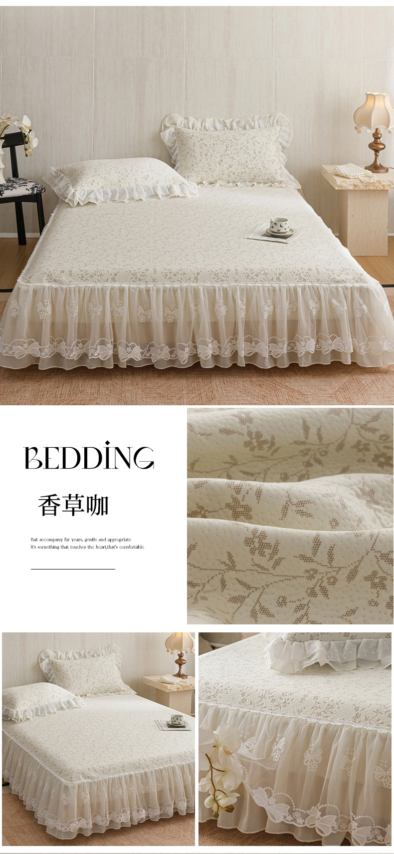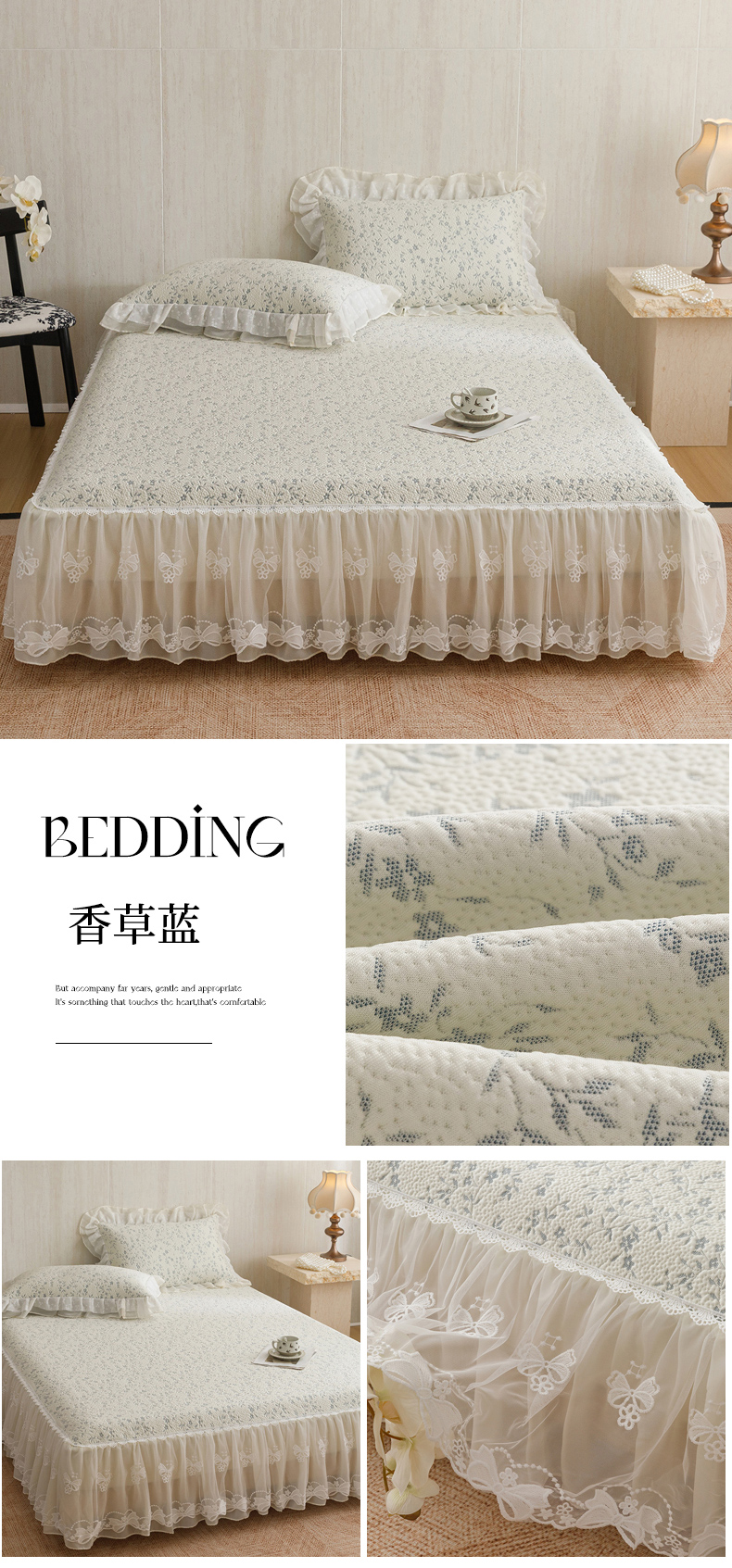 (总)菊上家纺 2026新款法式田园风蕾丝床裙,黛薇儿,芳菲粉,绫香紫,梦迪粉,梦兰蔻,梦青栀