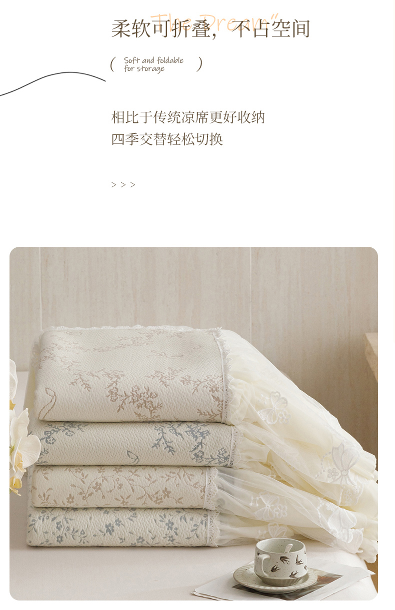 (总)菊上家纺 2026新款轻奢法式银丝豆豆席席子凉席-蝶恋花语,蝶恋花语-香槟,蝶恋花语-绿,蝶恋花语-粉