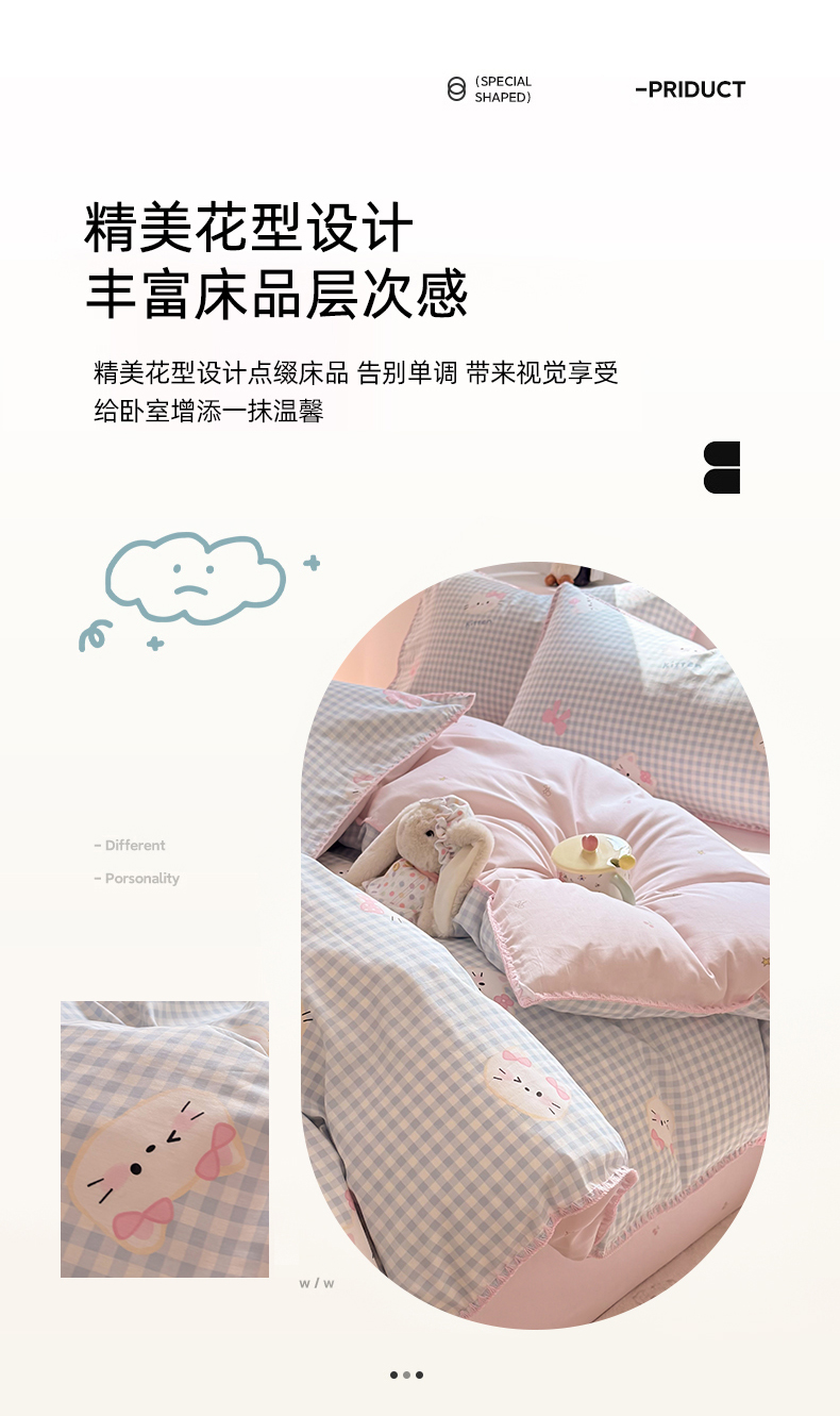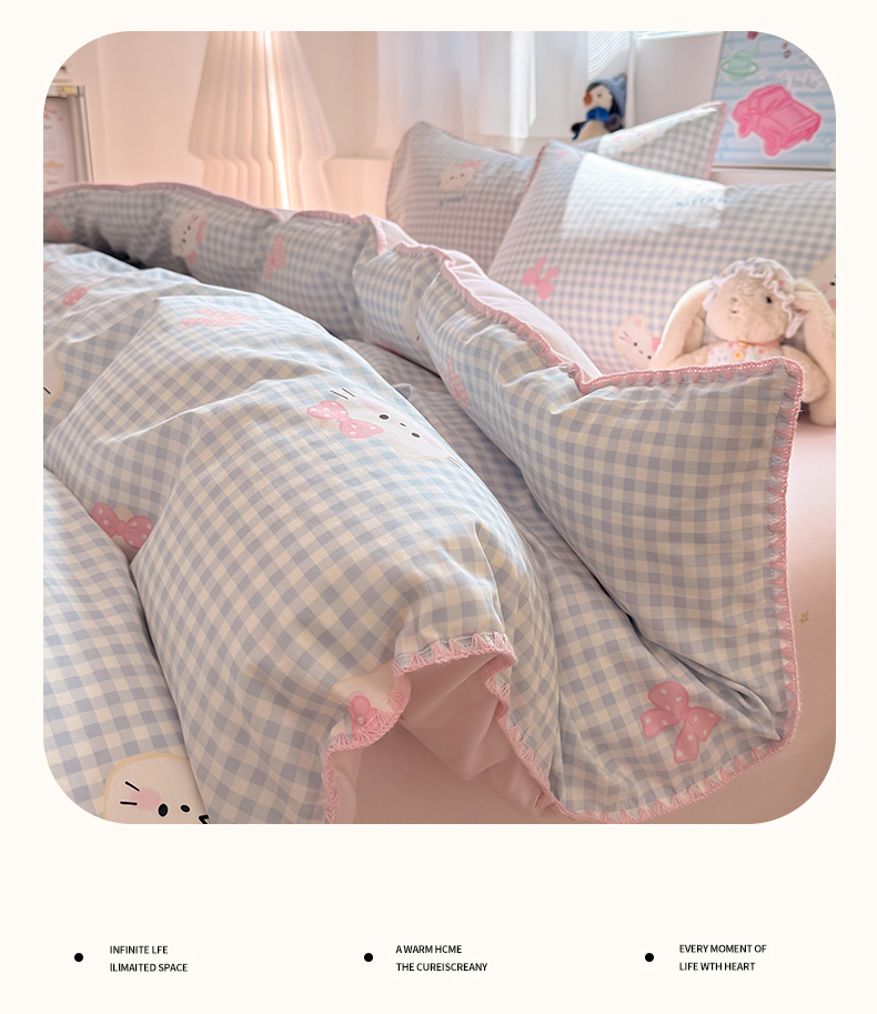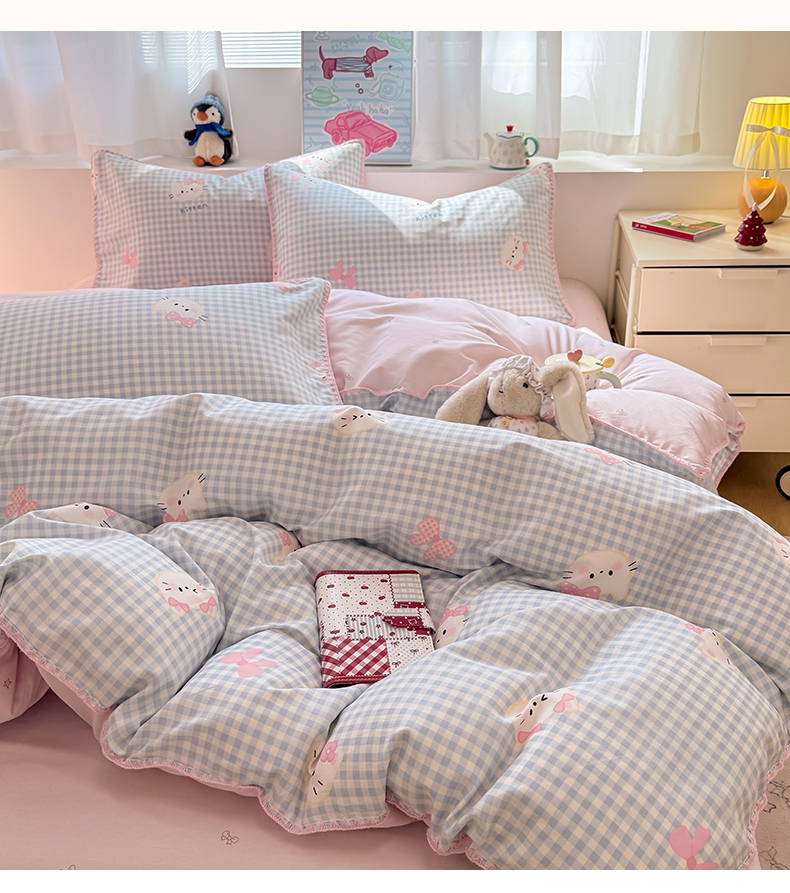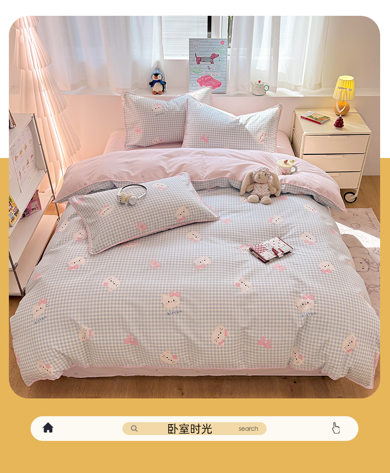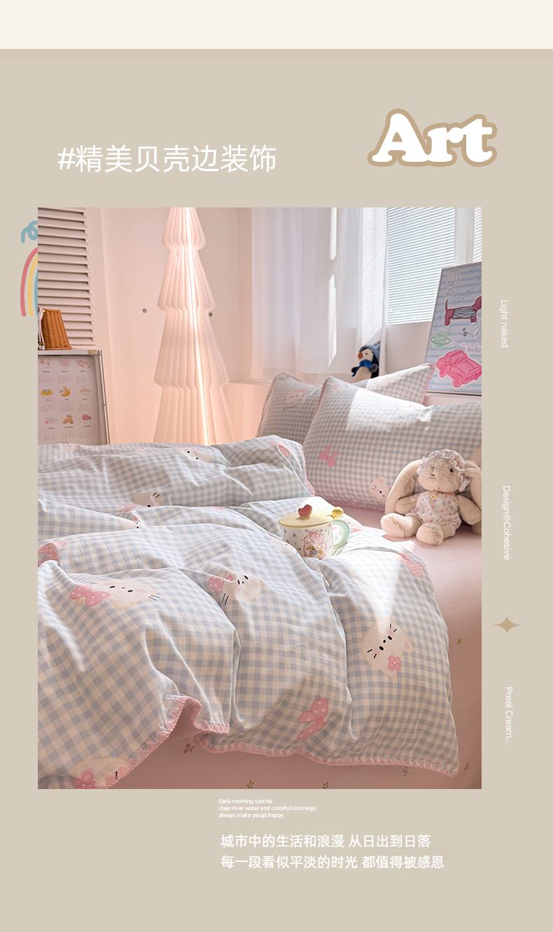 当前位置: 91家纺网 > 商品网购 > 床品套件 > 四件套 > 全棉普通四件套 > 简宜家居(朝初家纺) 2026新款贝壳边卡通可爱纯棉全棉四件套 蓝格日记