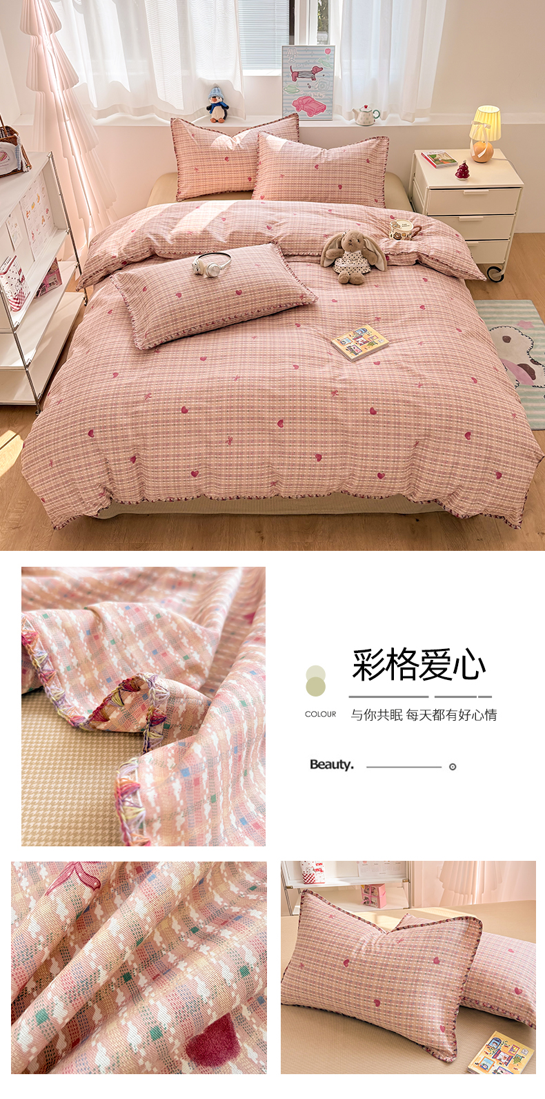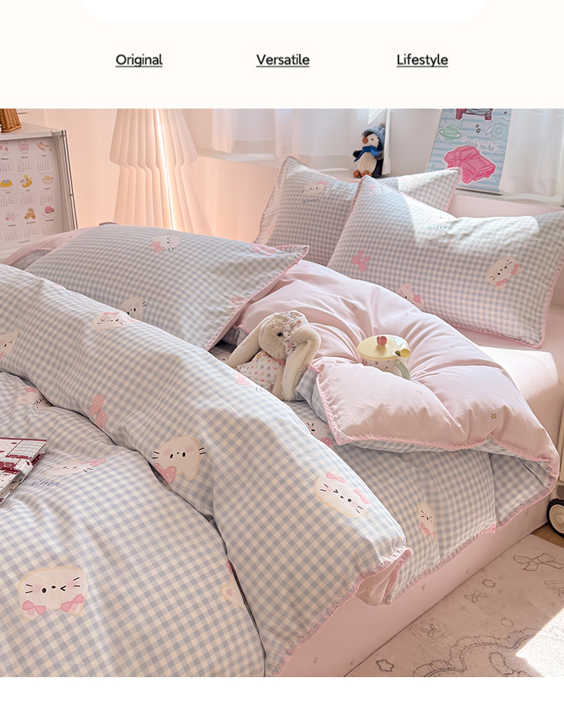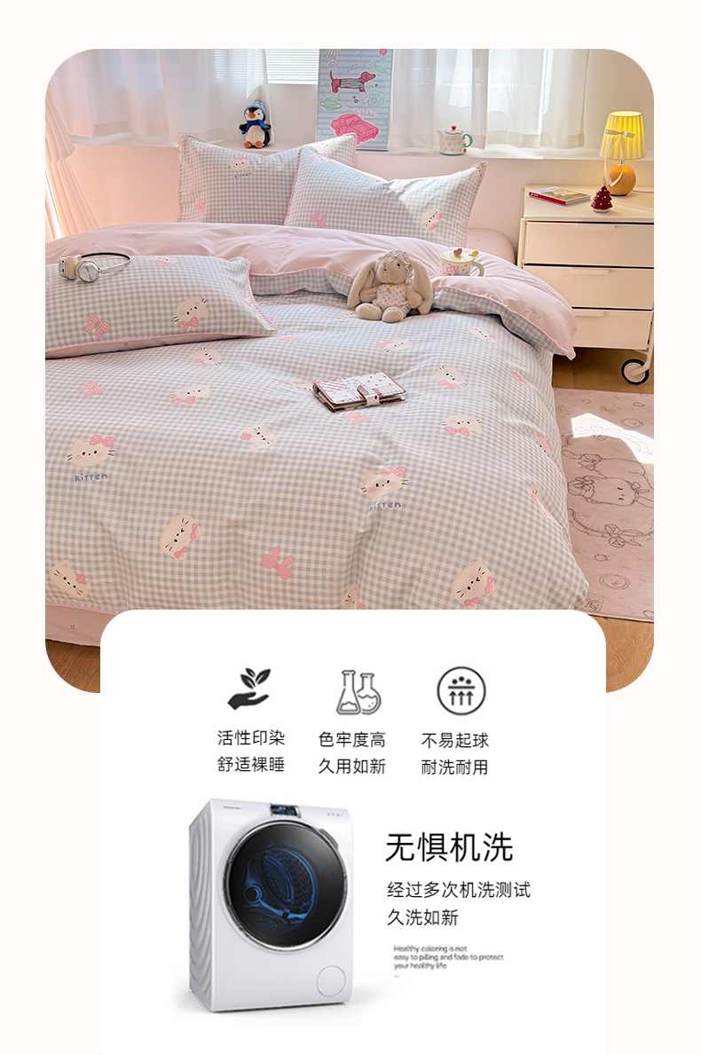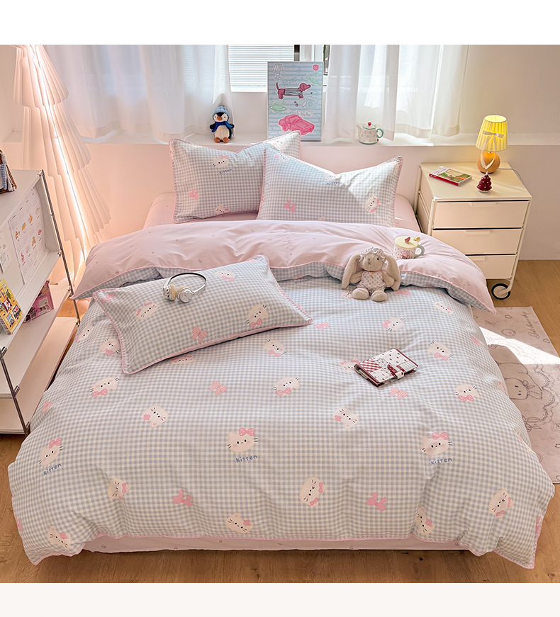 当前位置: 91家纺网 > 商品网购 > 床品套件 > 四件套 > 全棉普通四件套 > 简宜家居(朝初家纺) 2026新款贝壳边卡通可爱纯棉全棉四件套 蓝格日记