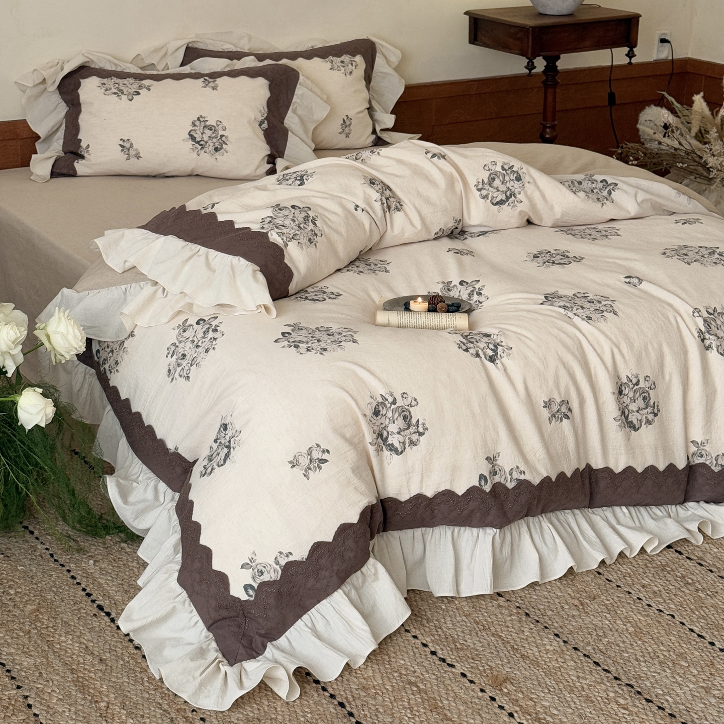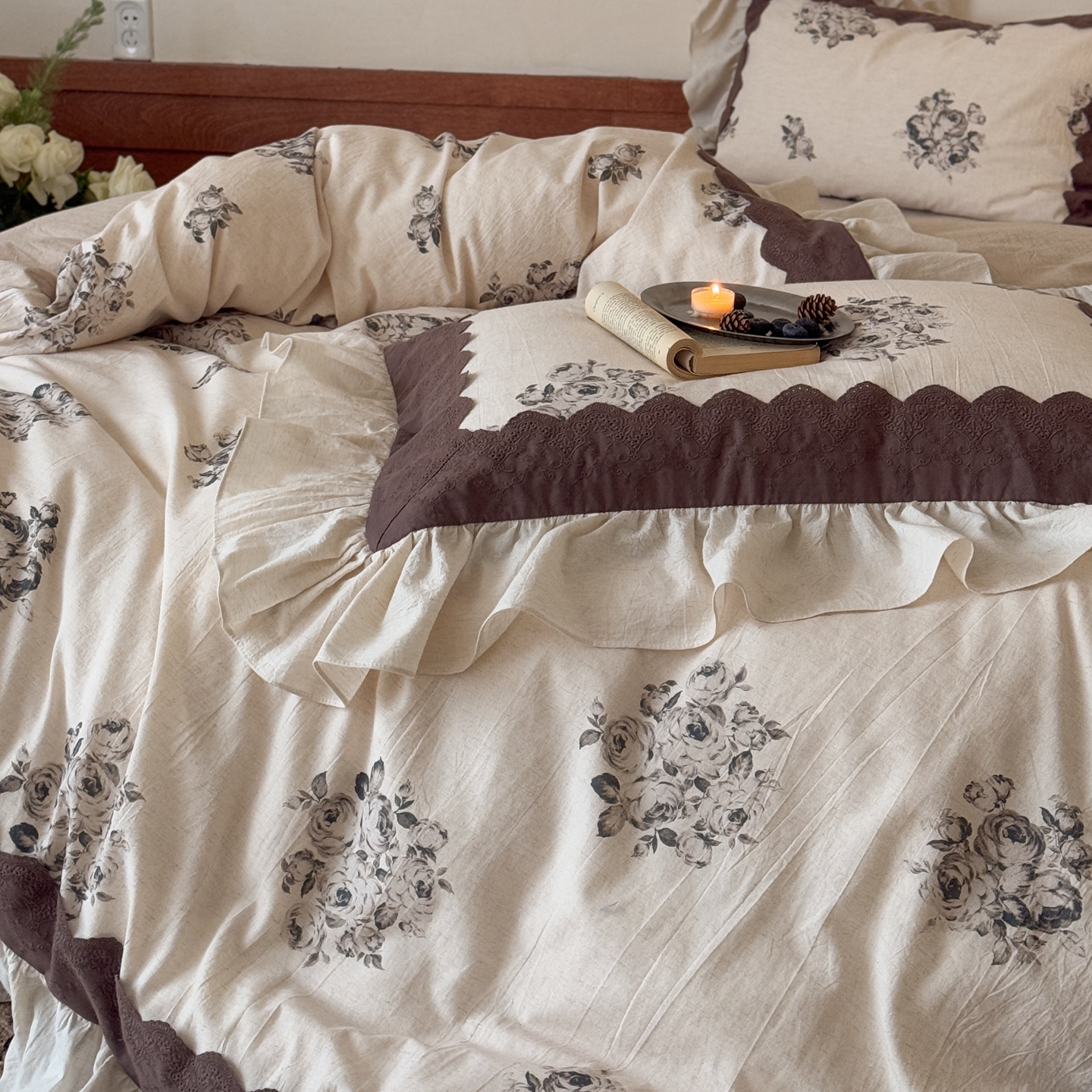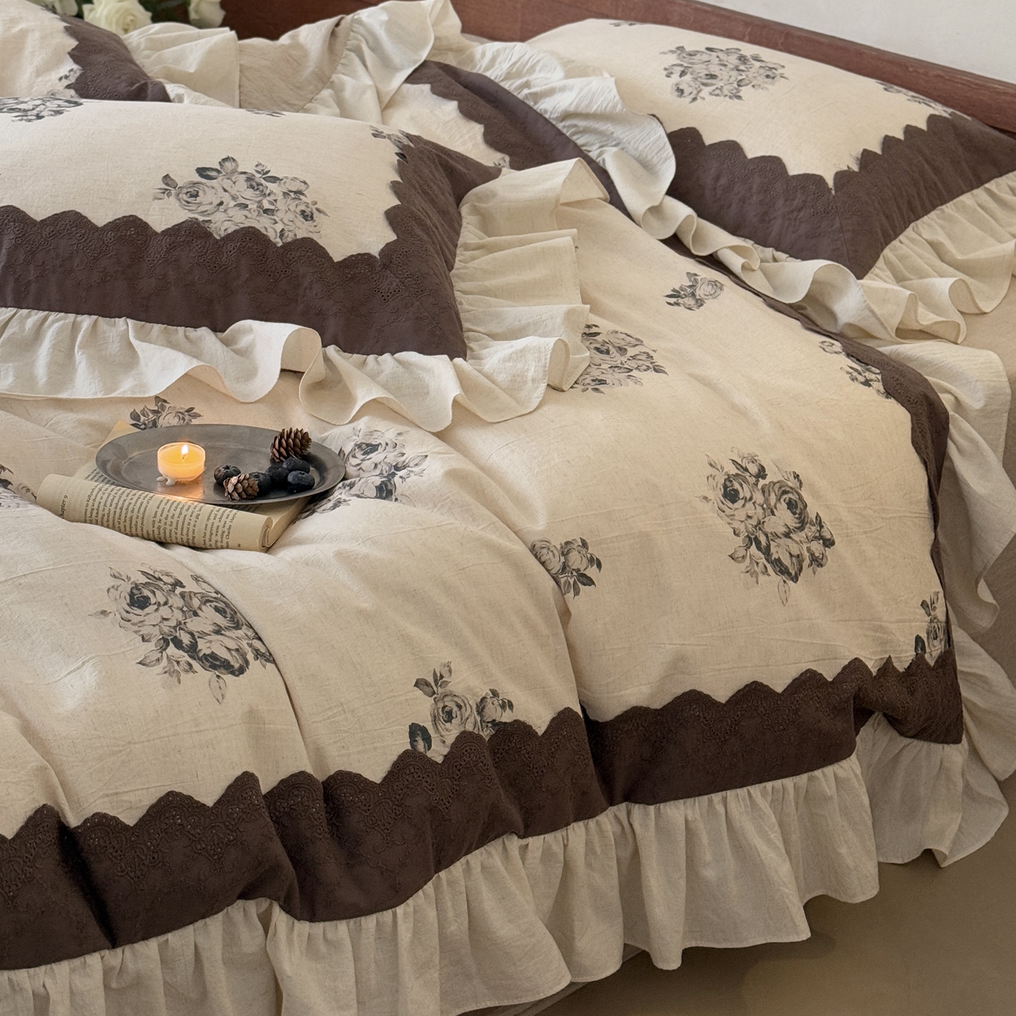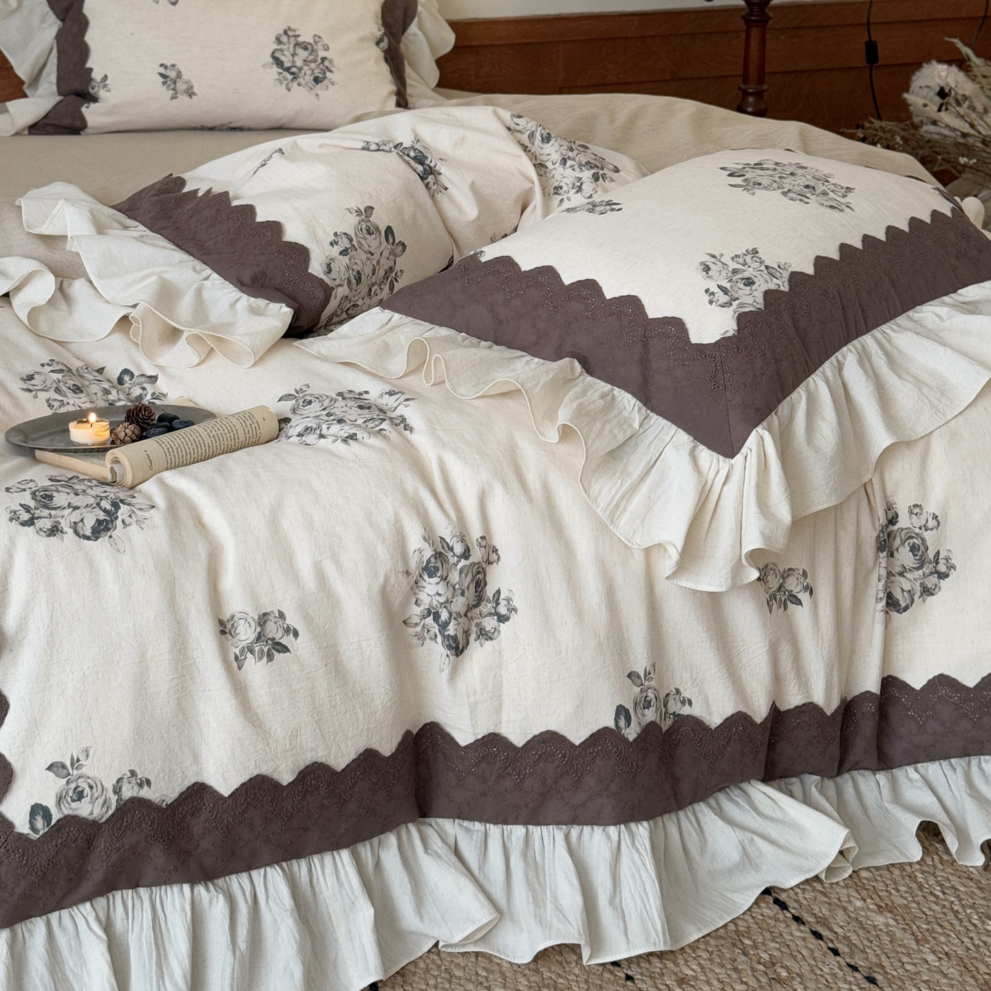 商品名称:(总)佳汐蓝家纺 2026新款复古棉麻印花四件套-半亩花田