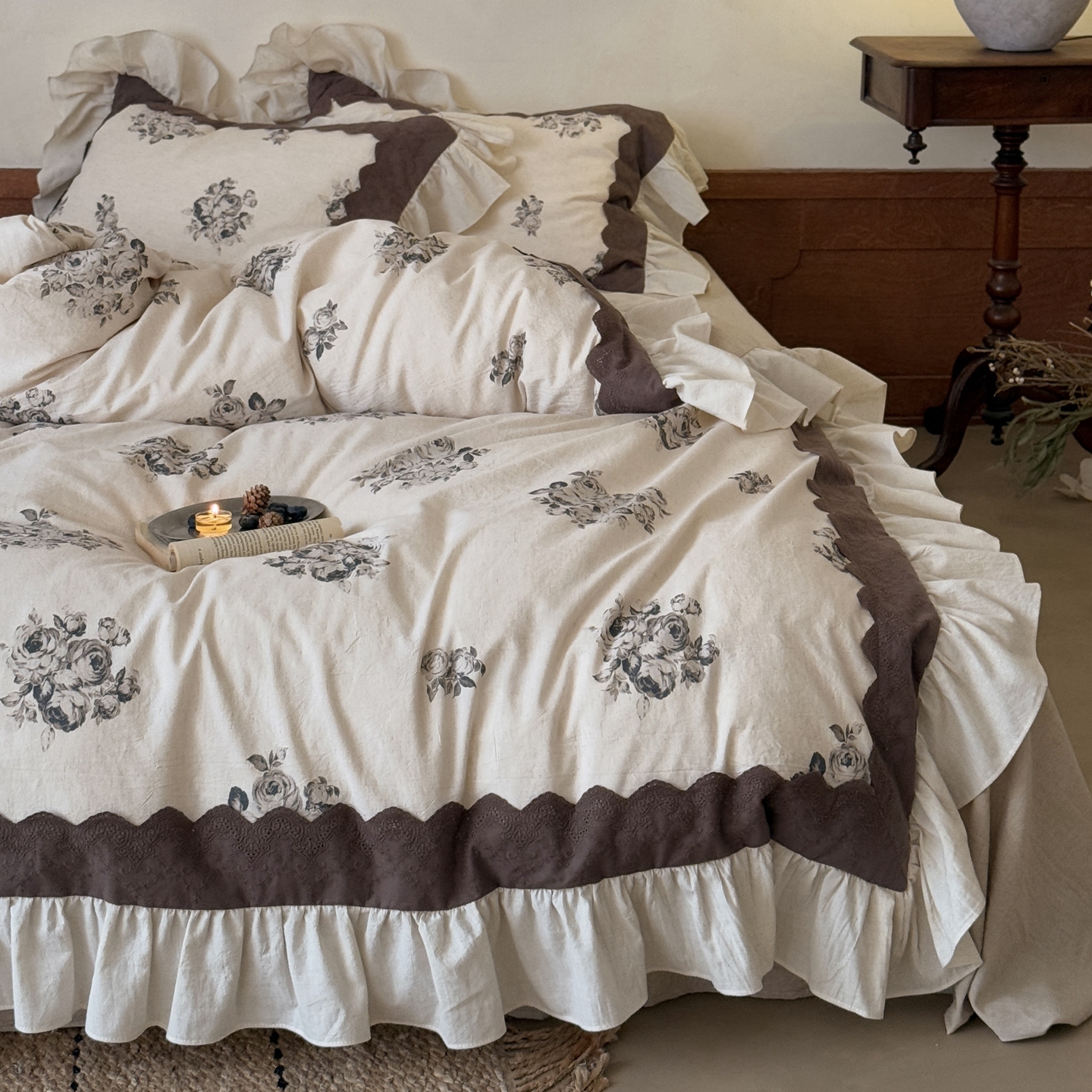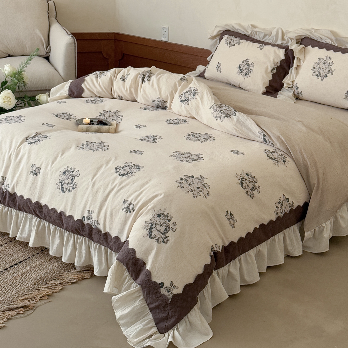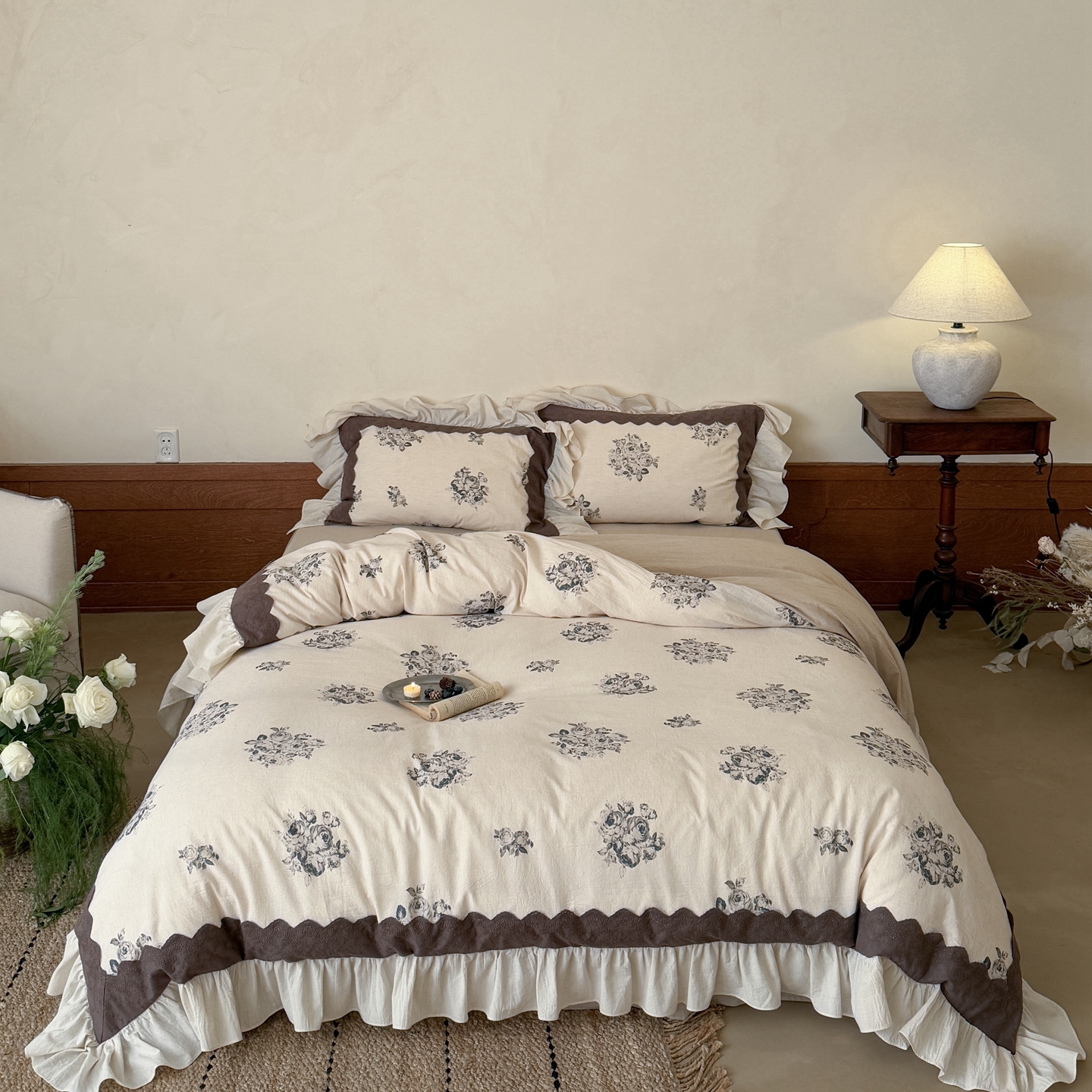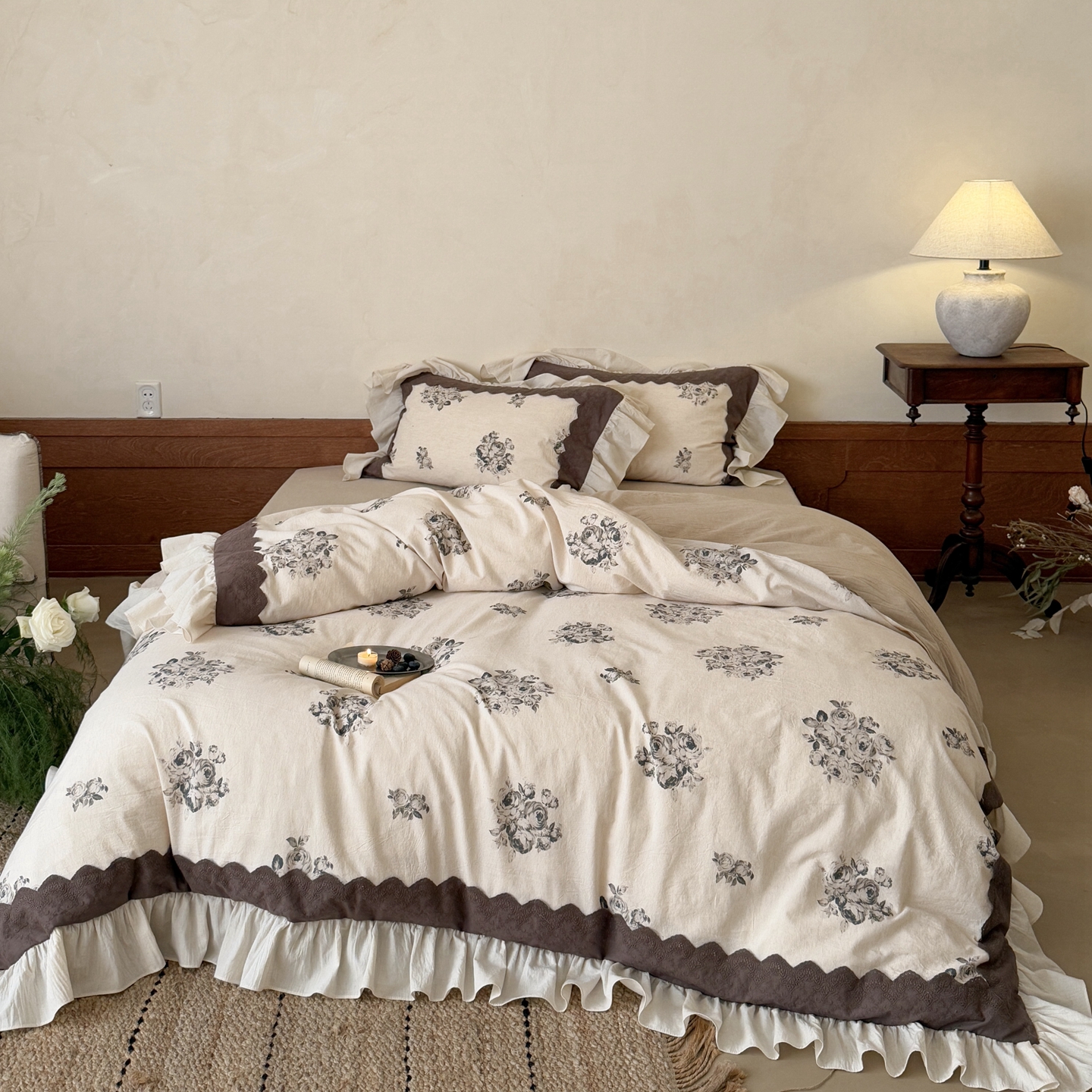 商品名称:(总)佳汐蓝家纺 2026新款复古棉麻印花四件套-半亩花田
