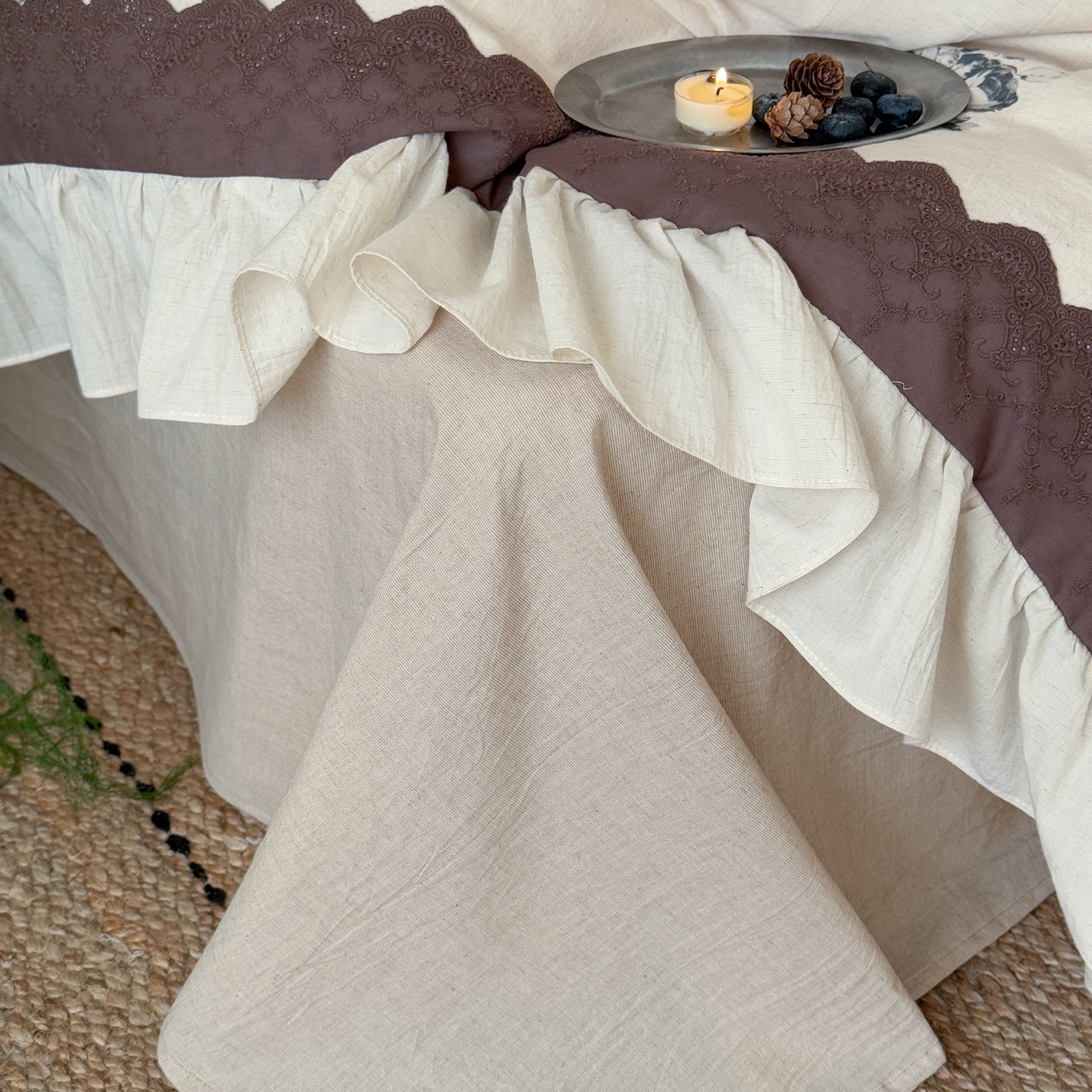 (总)佳汐蓝家纺 2026春夏新款棉麻皱皱双层纱四件套-古风铃岚 控价:卷后不低于398,古风铃岚