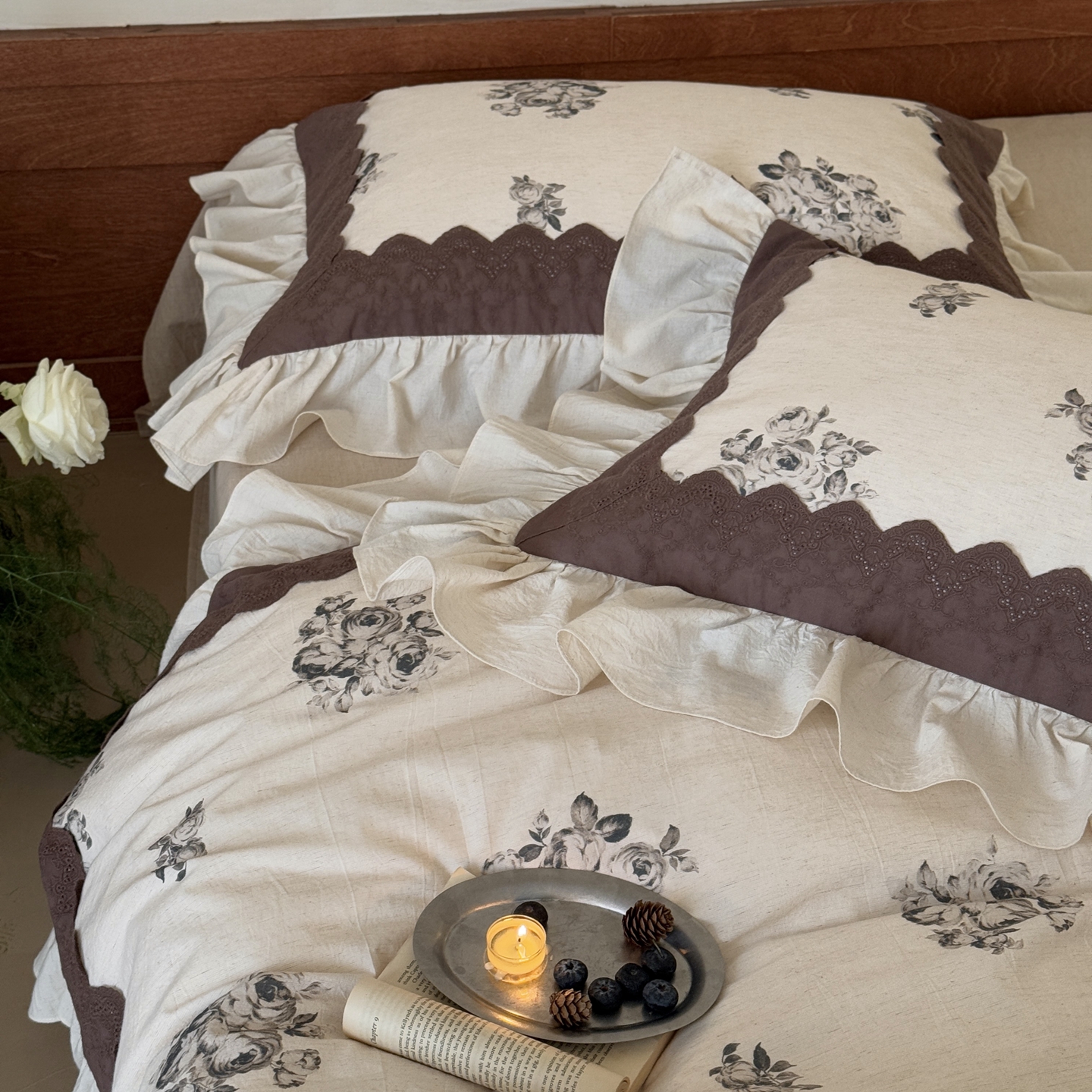 (总)佳汐蓝家纺 2026新款春夏棉麻新品印花+流光纱四件套-春缇玫瑰,春缇玫瑰