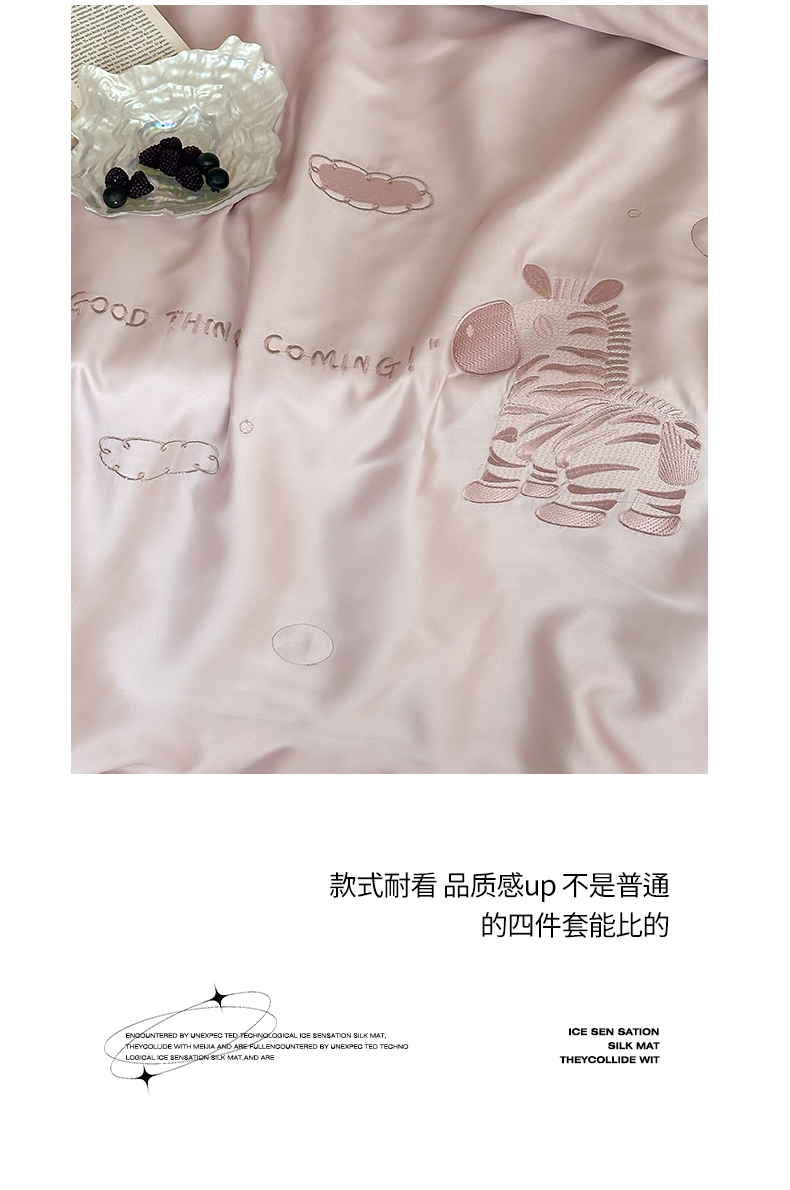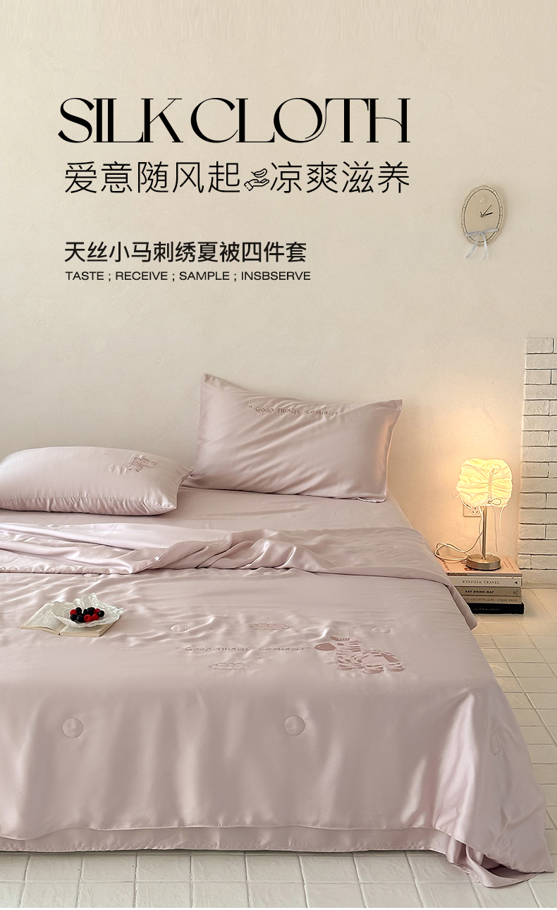 商品名称:极简 2026新款天丝小马刺绣夏被四件套轻云斑马 轻云斑马-紫