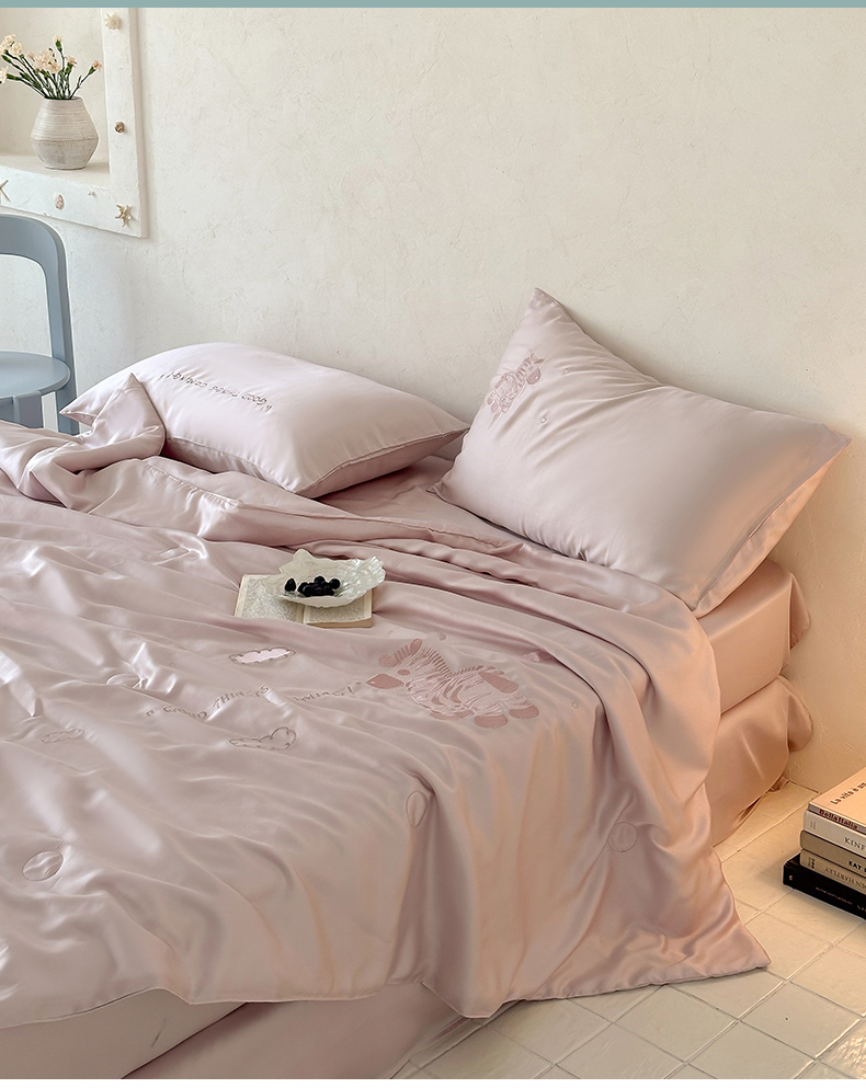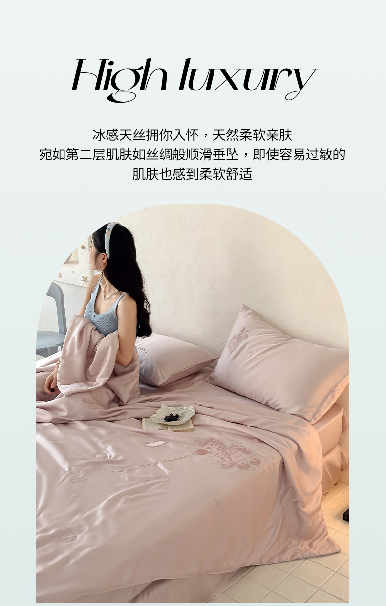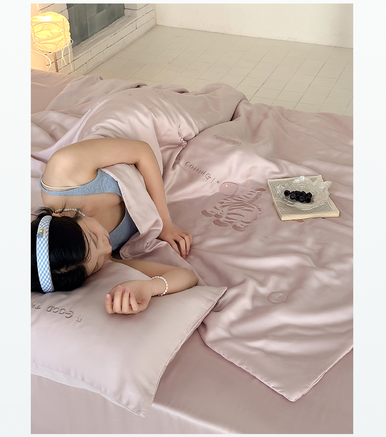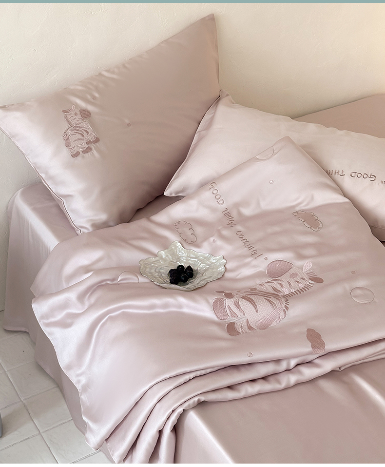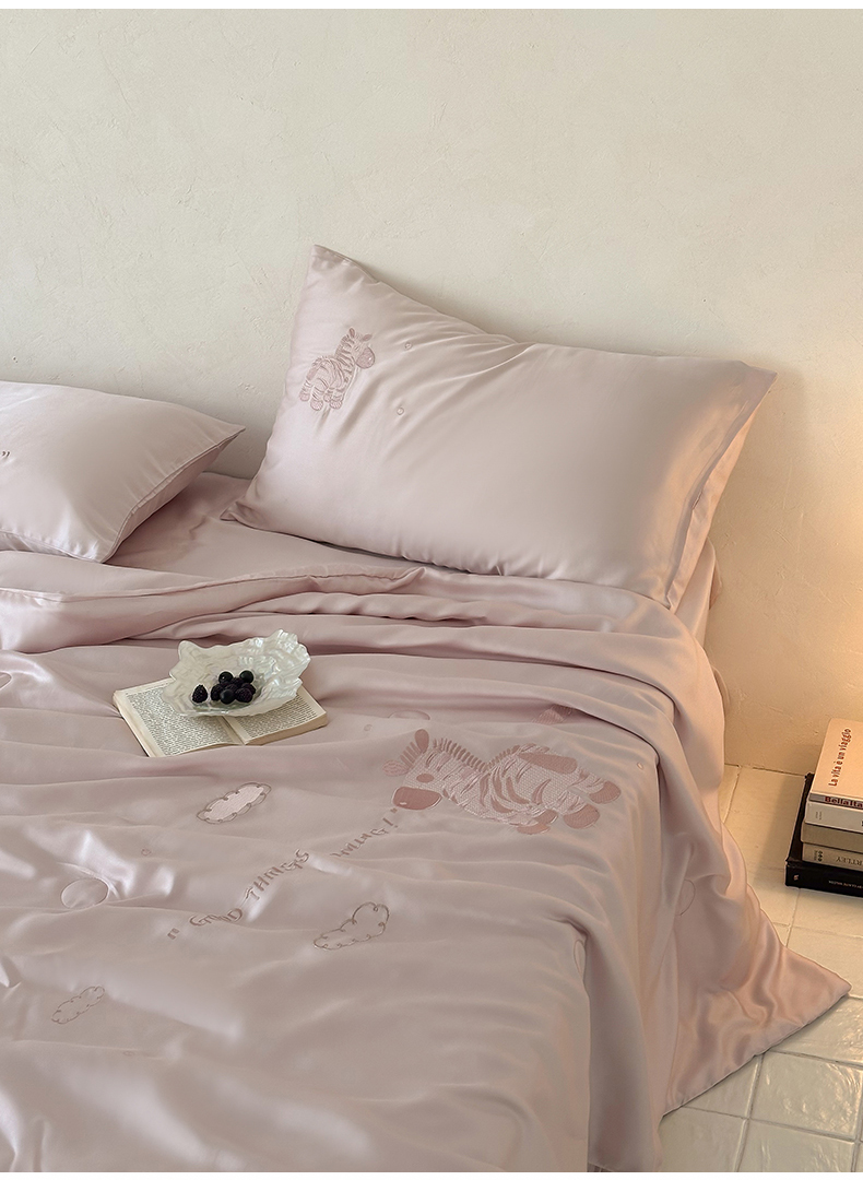 极简 2026新款天丝小马刺绣夏被四件套轻云斑马 轻云斑马-紫