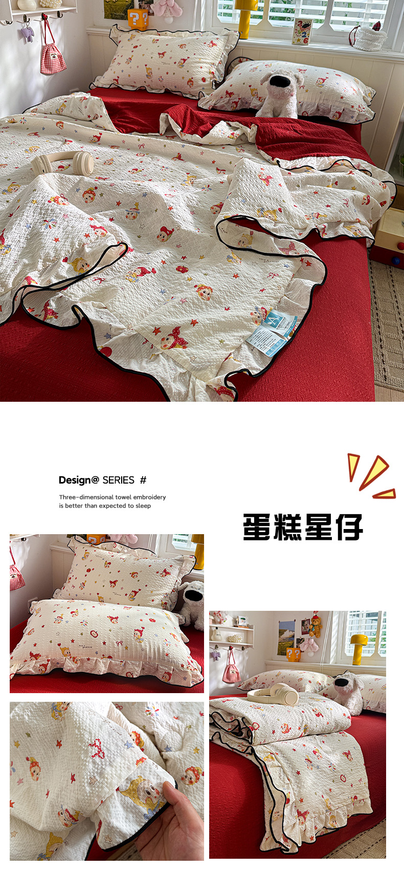 水墨江南 2026新款泡芙纱花边夏被四件套 蛋糕星仔