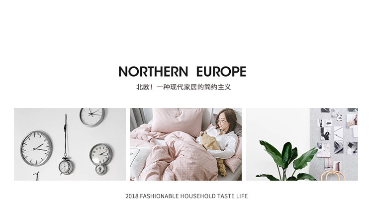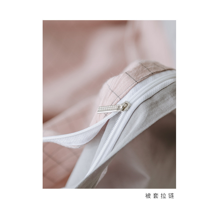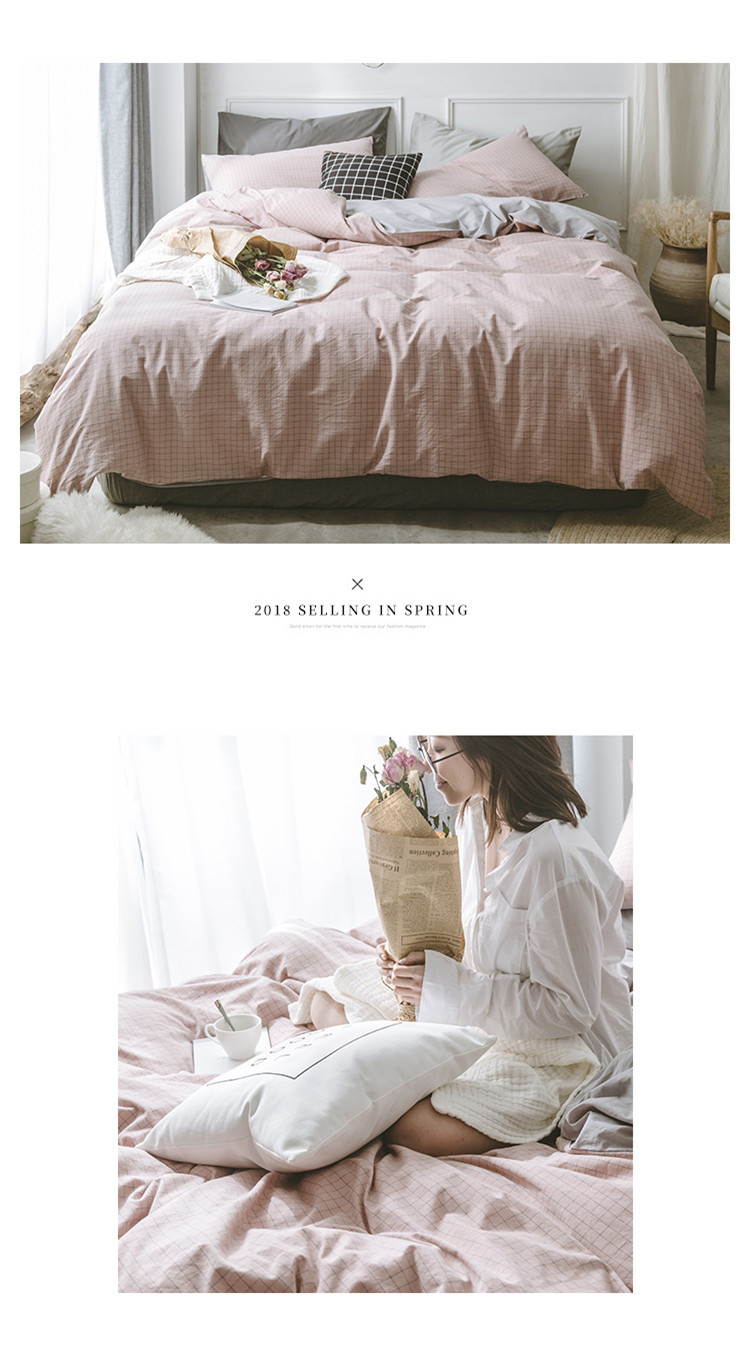商品名称:早春全棉色织水洗套件电子图浅粉格子