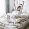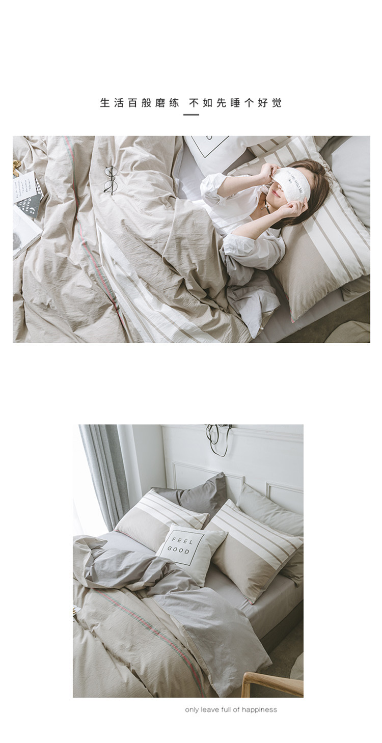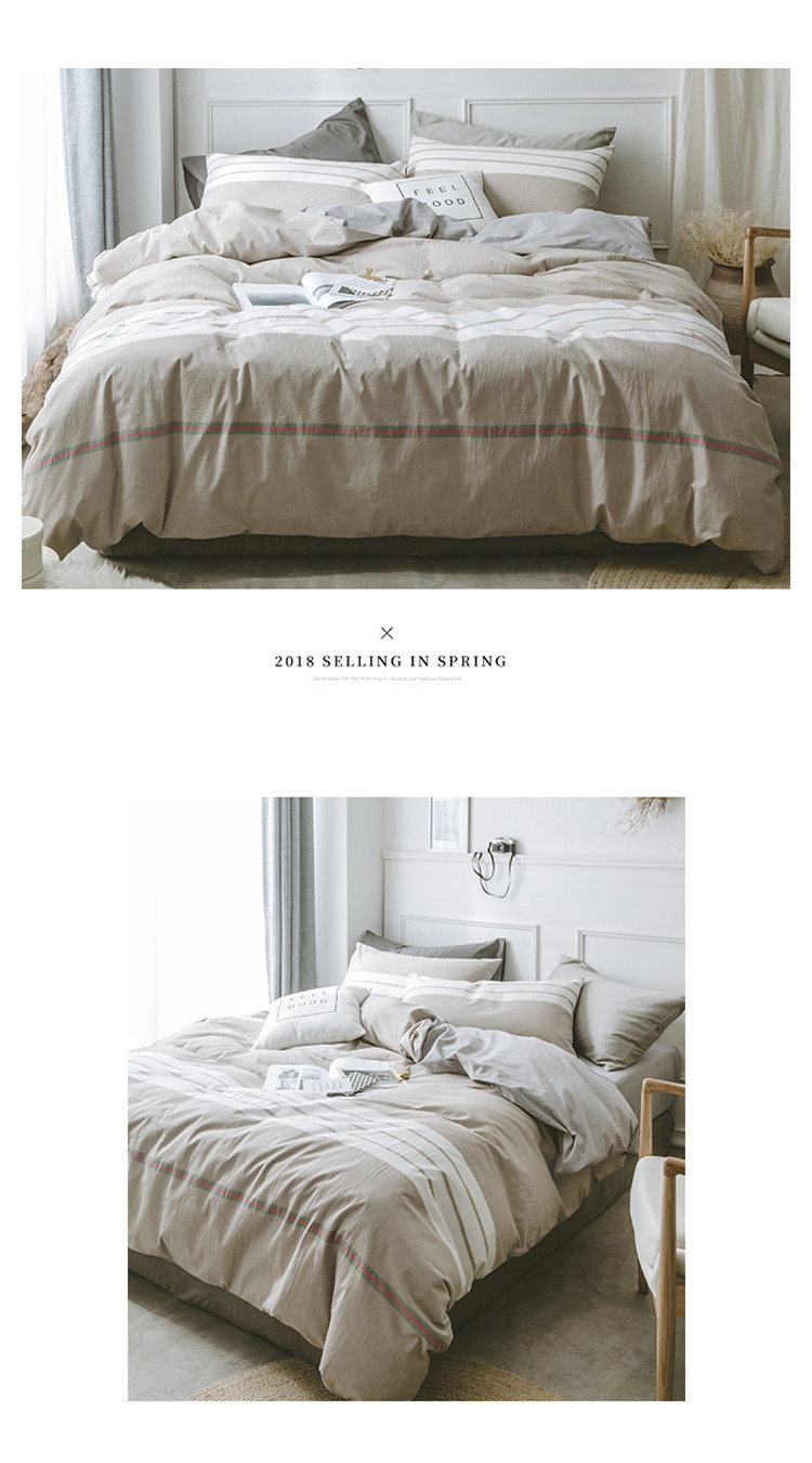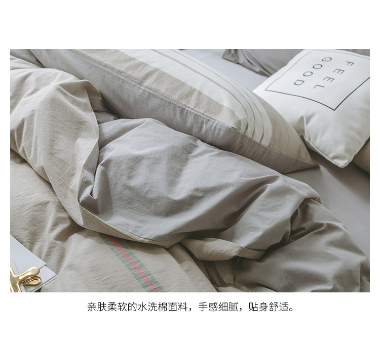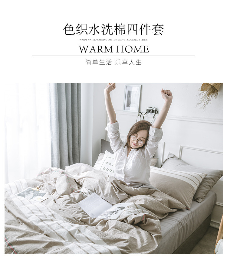 商品名称:早春全棉色织水洗套件模特图杏黄条纹