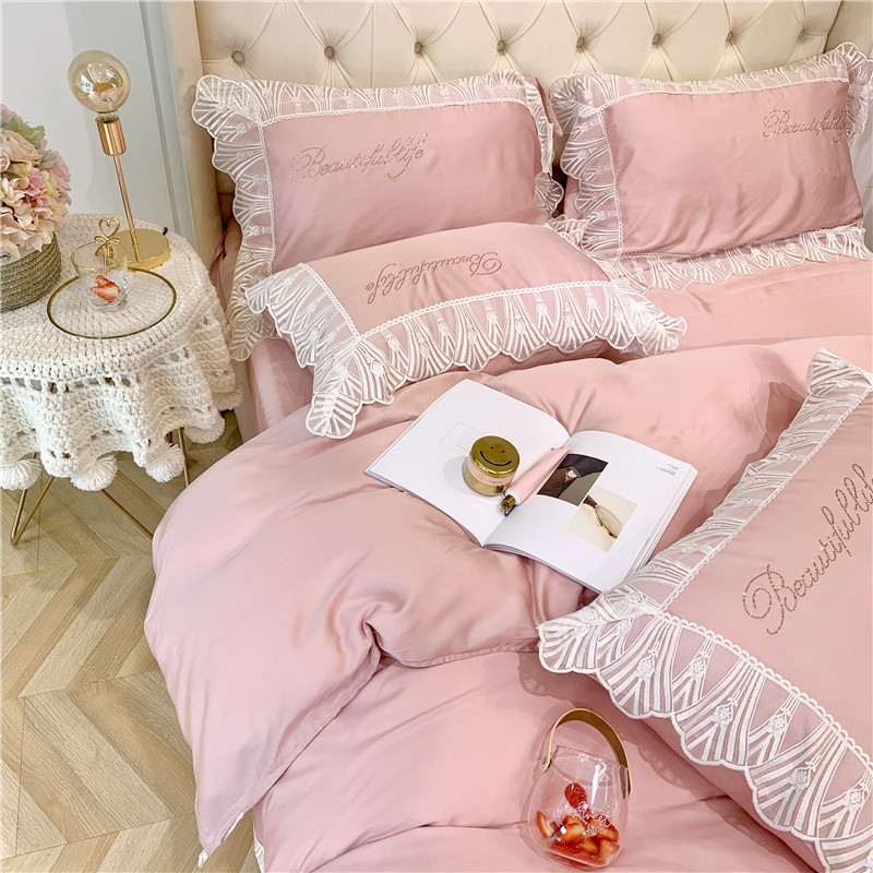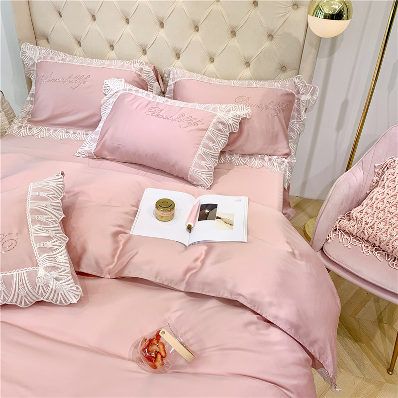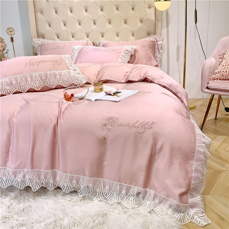 馨蕊家居 2021新款天丝绣花系列四件套 雪莉-藕粉