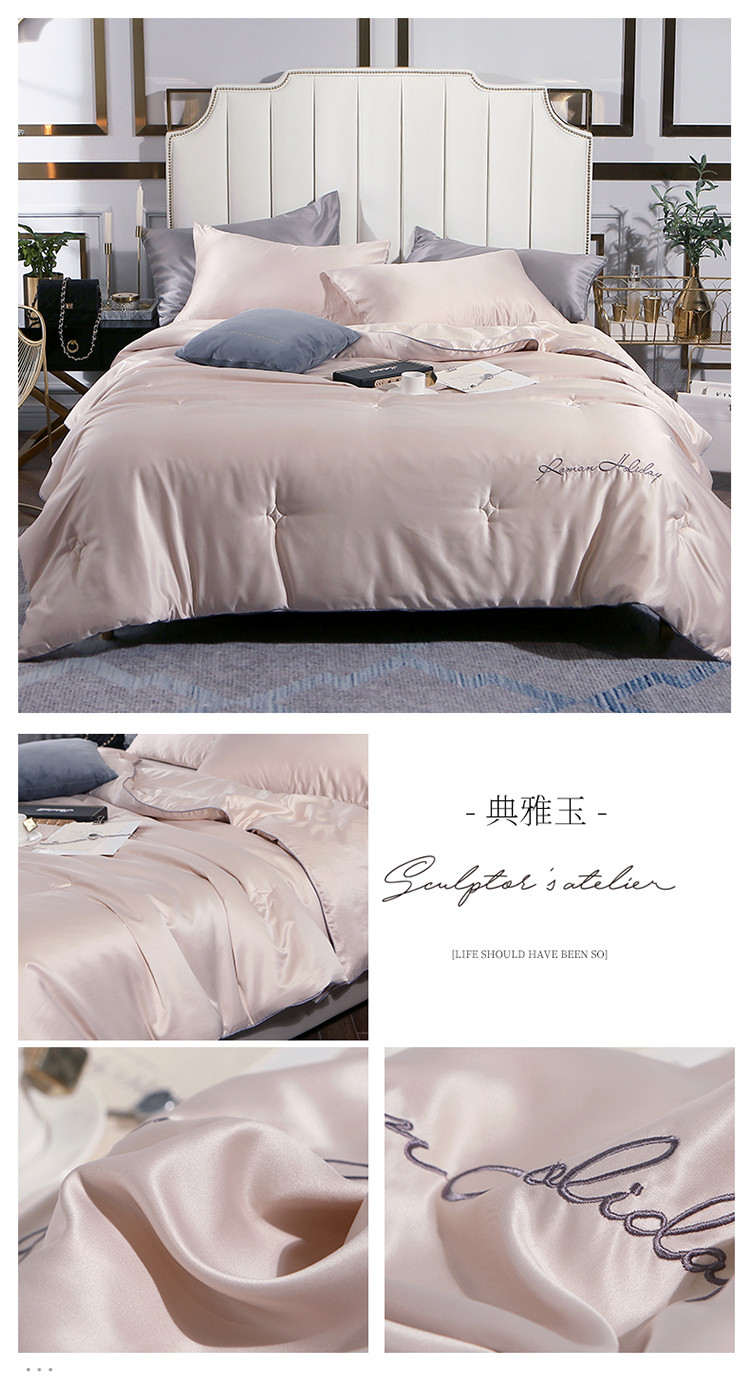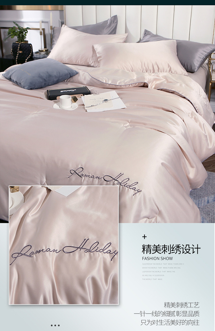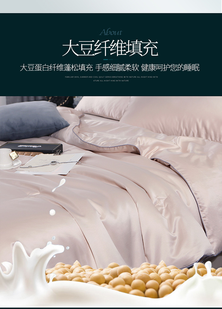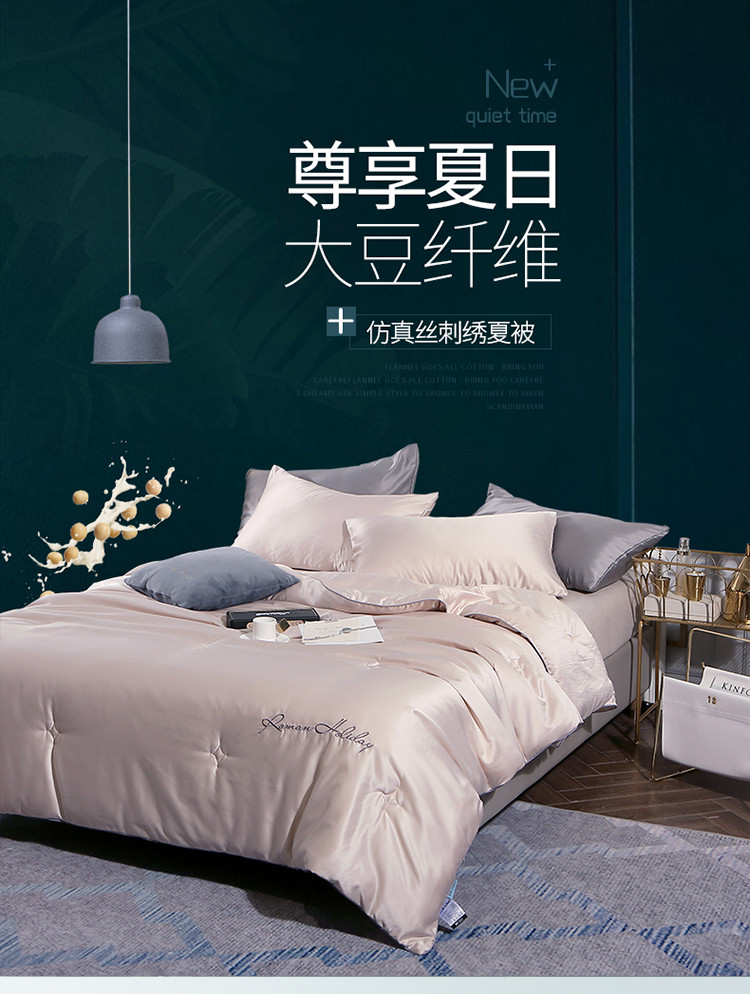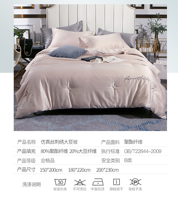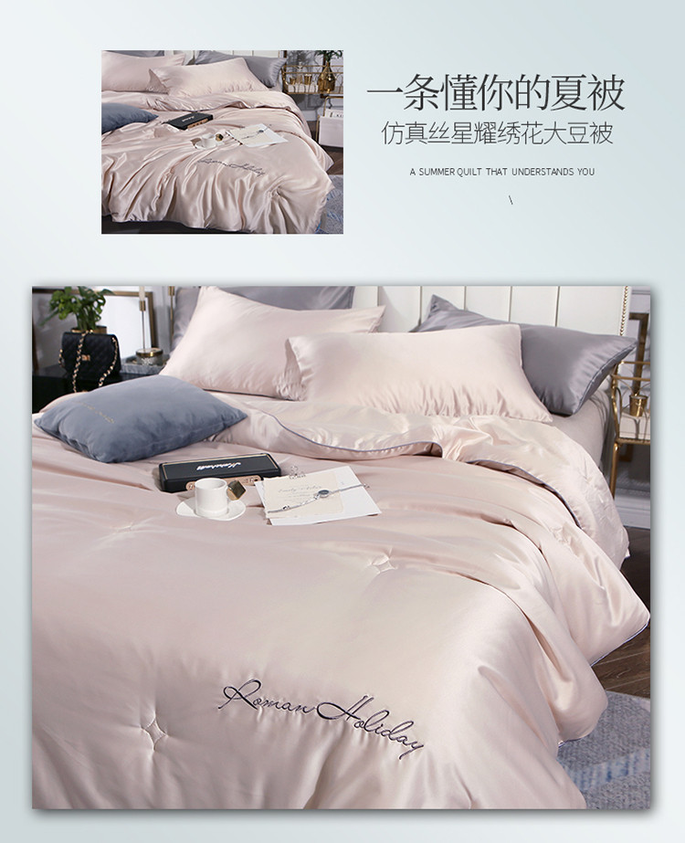 商品名称:头等舱 2019水洗真丝星耀绣花大豆夏被 香槟色